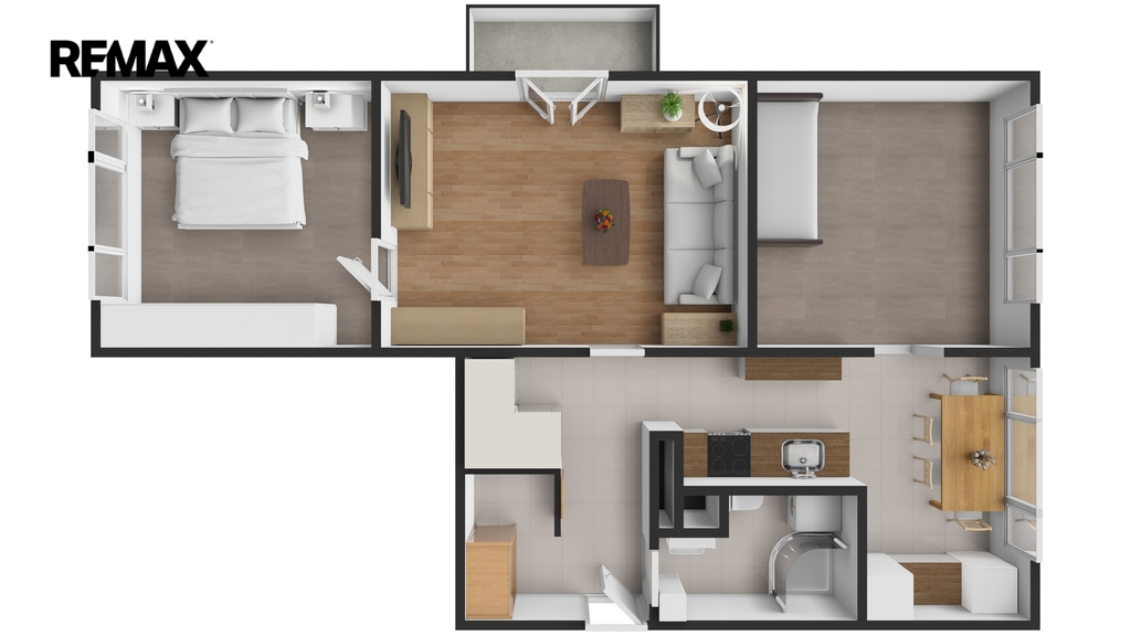 • Dispozice a plocha: Na ploše 65 m² naleznete světlý obývací pokoj se vstupem na balkon, moderní kuchyni, ložnici, pracovnu, předsíň a koupelnu a WC.