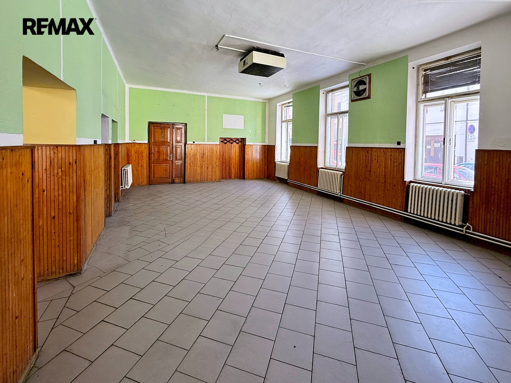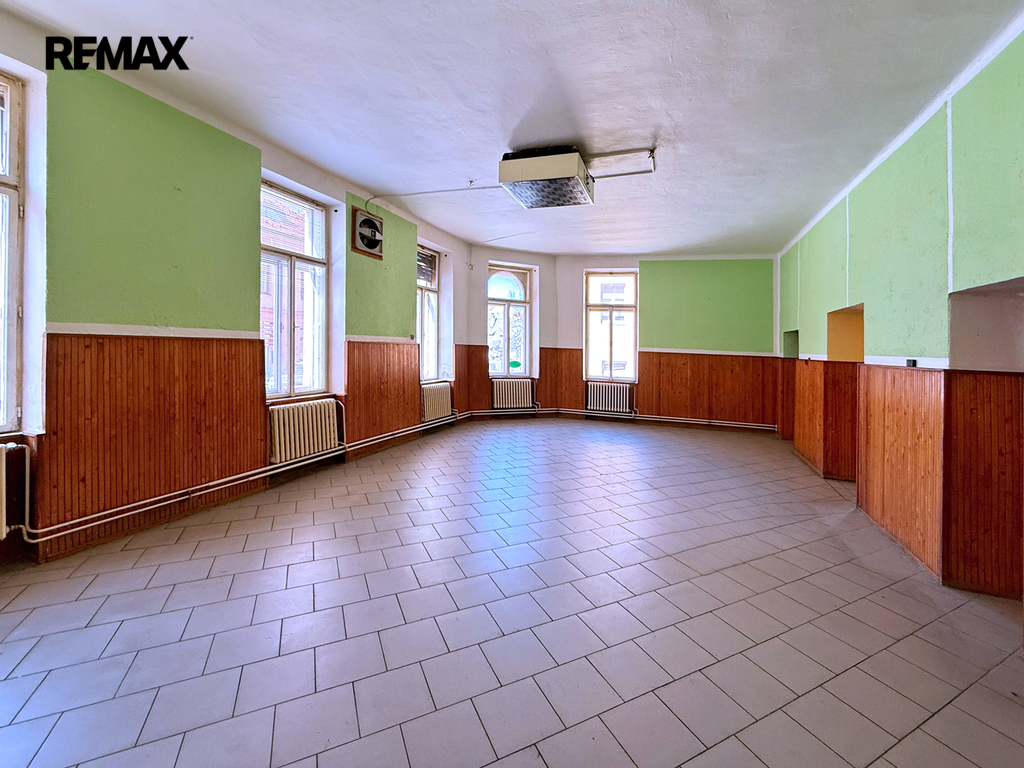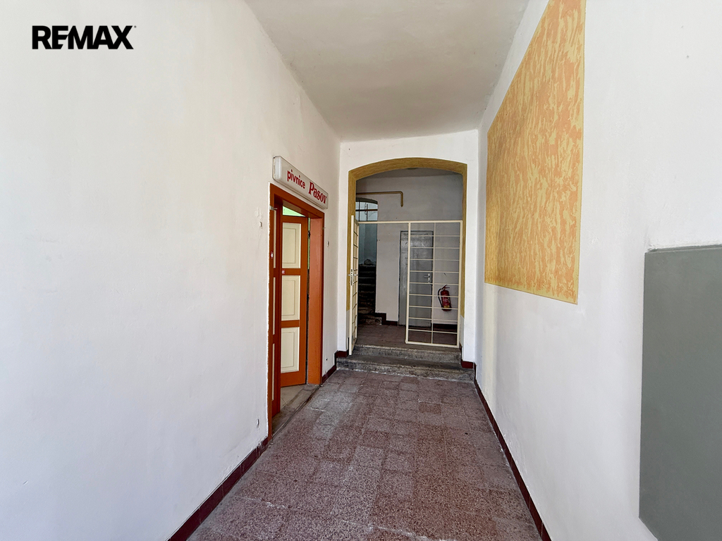 1.NP (300 m²) – Prostor využívaný jako restaurace: výčep, hlavní sál, toalety, zázemí pro kuchyni, šatna a sklad. Druhý východ vede do dvora. Dále zde najdete samostatnou obchodní jednotku s výlohami.