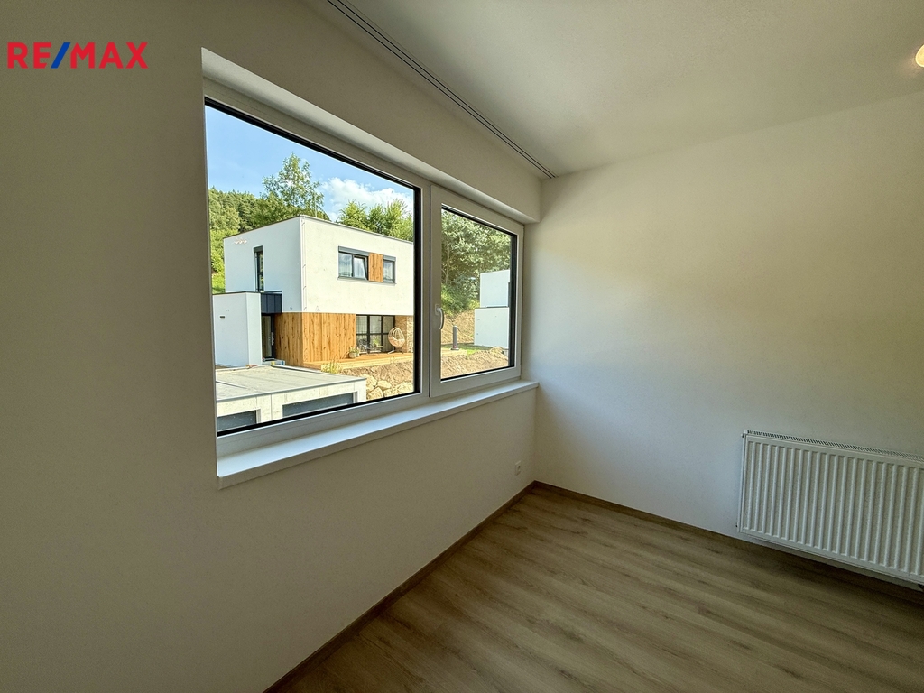 Dům s plochou 95,08 m² a dispozicí 4+kk nabízí vzdušné a harmonické bydlení. Velká okna propojují interiér s přírodou a vpouštějí dovnitř spoustu denního světla. Při vstupu do domu vás přivítá prostorné zádveří, technická místnost a WC. Centrální částí domu je otevřený obývací prostor, propojený s kuchyňským koutem a jídelnou. Dům nabízí přímý vstup na krytou vydlážděnou terasu s nádherným výhledem. Horní patro je oázou klidu a soukromí. Tři neprůchozí pokoje a hlavní koupelna jsou navrženy tak, aby vyhovovaly všem potřebám klientů.