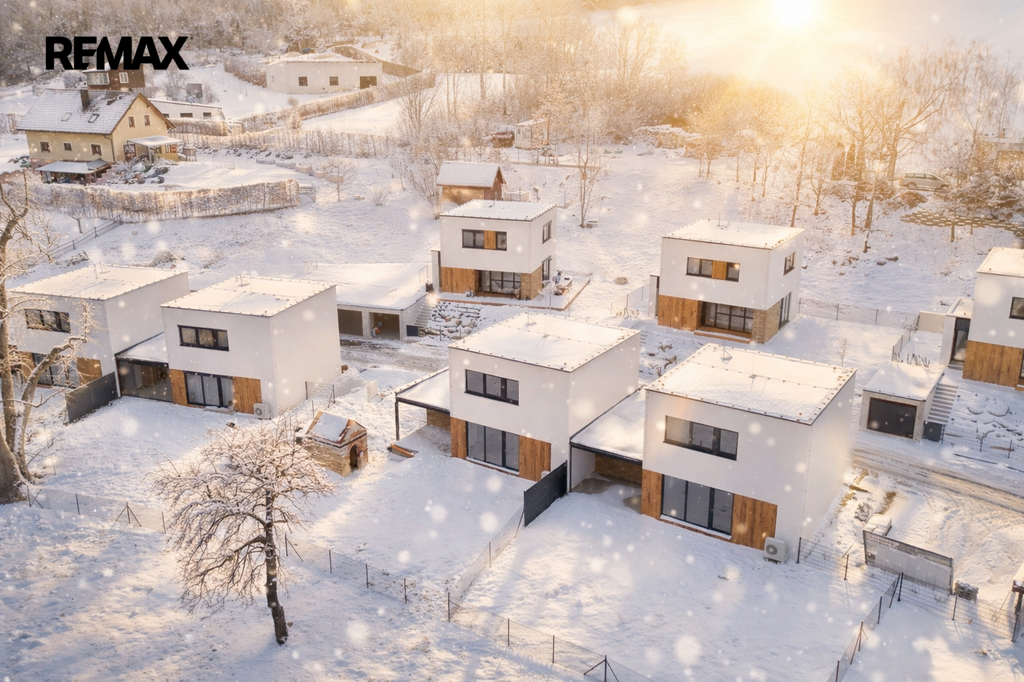 Domy v horní části projektu s plochou 95,73 m² a dispozicí 4+kk nabízí vzdušné a harmonické bydlení. Velká okna propojují interiér s přírodou a vpouštějí dovnitř spoustu denního světla. Při vstupu do domu vás přivítá prostorné zádveří s čisticí zónou, technická místnost s WC, která nabízí dostatek místa. Srdcem domu je otevřený obývací prostor, propojený s kuchyňským koutem a jídelnou. Dům nabízí přímý vstup na dřevěnou modřínovou částečně krytou terasu s nádherným výhledem. Horní patro je oázou klidu a soukromí. Tři neprůchozí pokoje a hlavní koupelna jsou navrženy tak, aby vyhovovaly všem potřebám klientů.