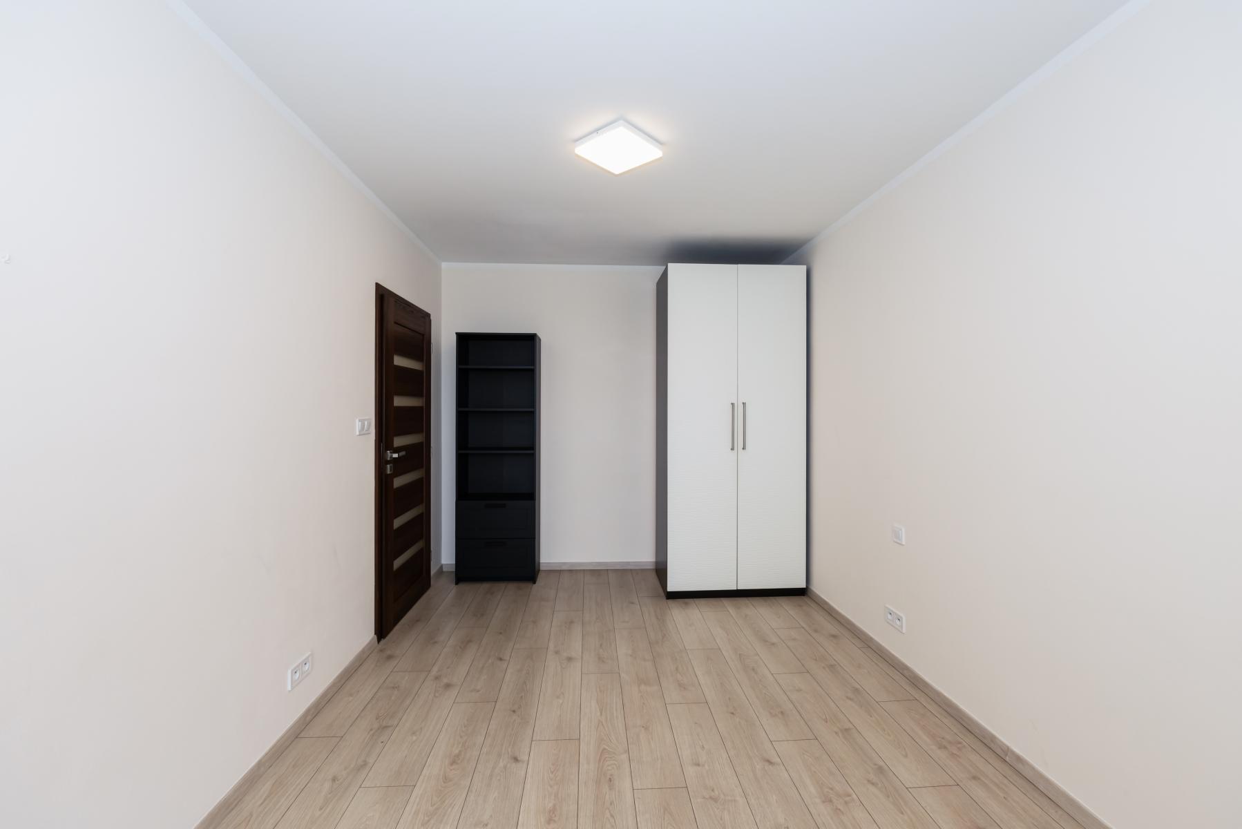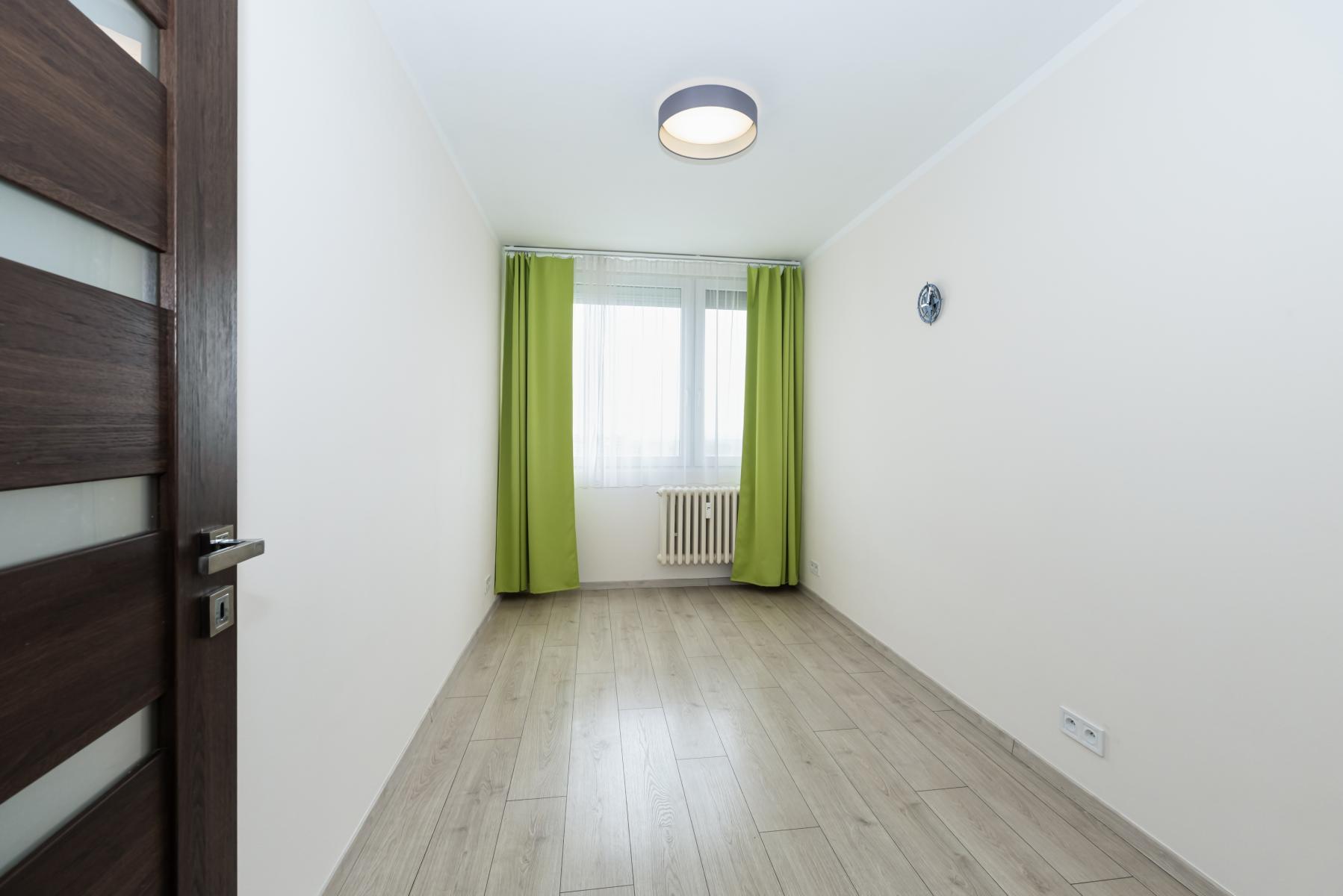 Ložnice prázdná místnost připravená k zařízení dle vlastních představ, opět s venkovními elektrickými žaluziemi.