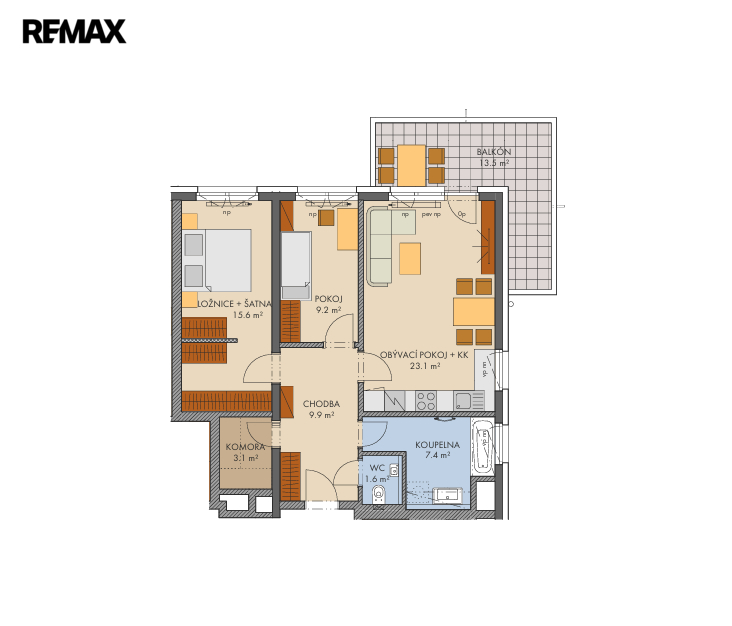 - Užitná plocha: 74 m²