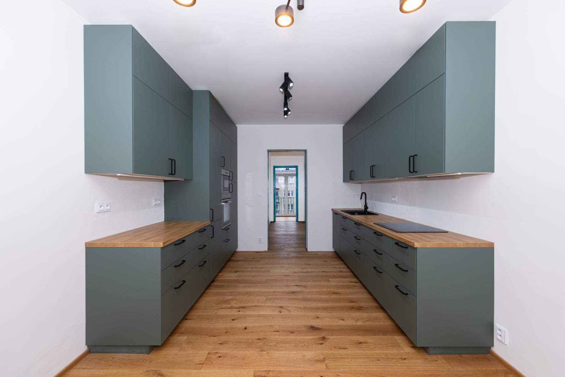 Prostorná kuchyně s kuchyňskou linkou na míru a vestavěnými spotřebiči: