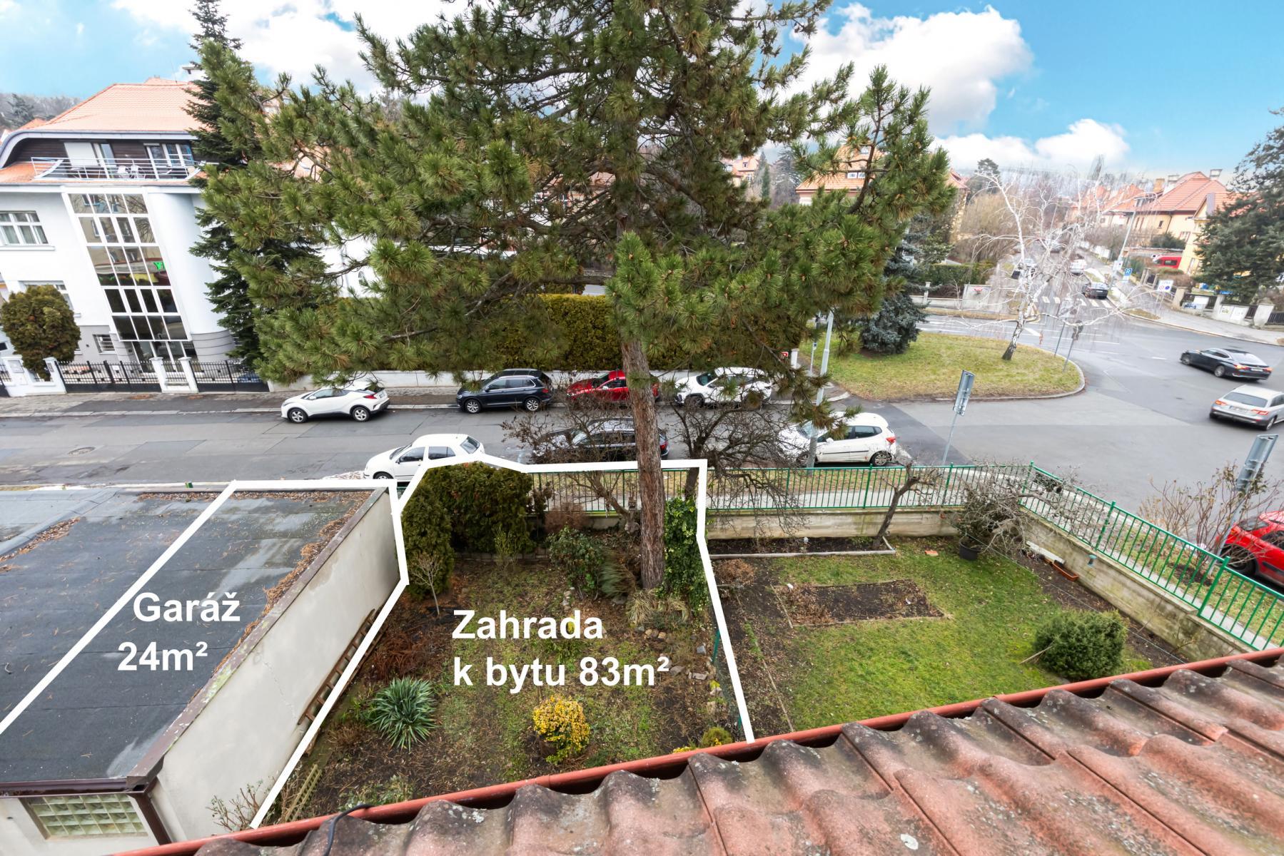 Součástí nabídky je samostatná zděná garáž o velikosti 24 m, vlastní zahrada o výměře 83 m a sklep v suterénu domu 9 m.
