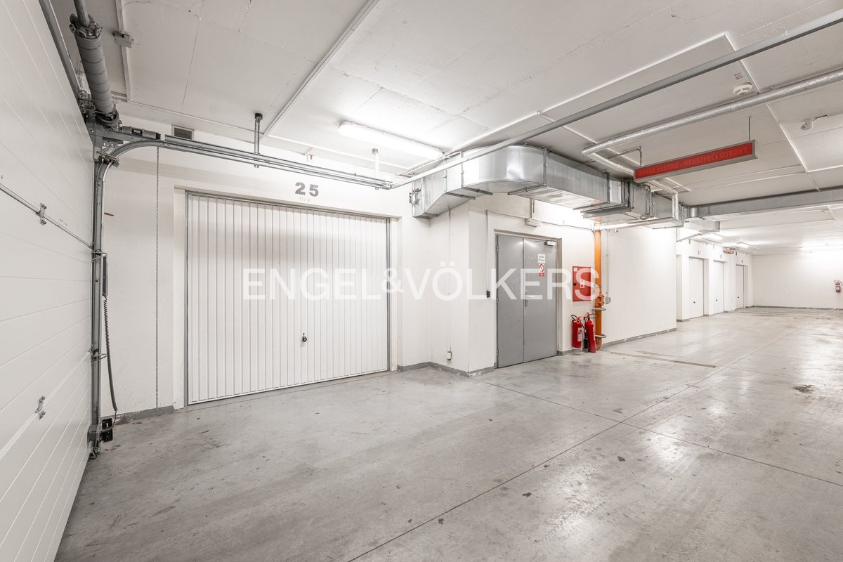 Jednou z hlavních předností této nabídky je výjimečná kombinace vlastní garáže, sklepa a parkování pro hosty, což je v této lokalitě skutečnou raritou. Do ateliéru i do garáže je možný vstup jak z ulice, tak z klidného vnitrobloku, který je přístupný přes dvě elektrické brány.