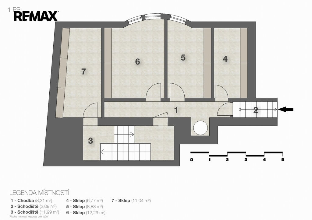 1. podzemní podlaží (1. PP) – 47,1 m²