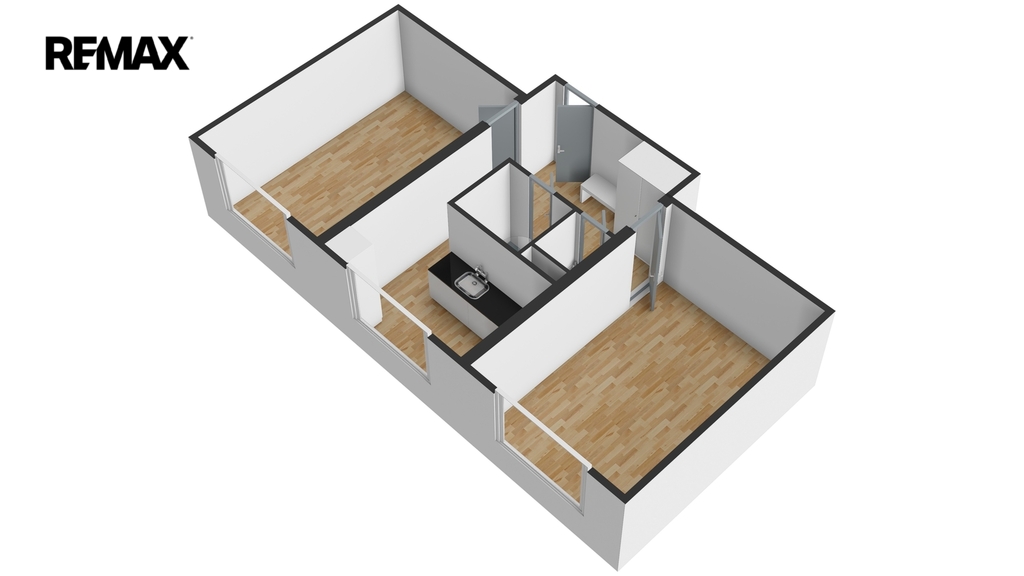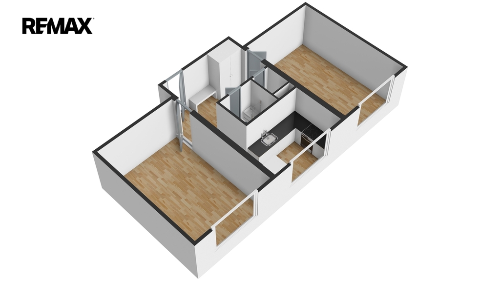 Byt nabízí dva neprůchozí pokoje, samostatnou kuchyni se základní výbavou vestavěných spotřebičů (varná deska, elektrická trouba, myčka, odsavač par), koupelnu se sprchovým koutem a samostatnou toaletu.