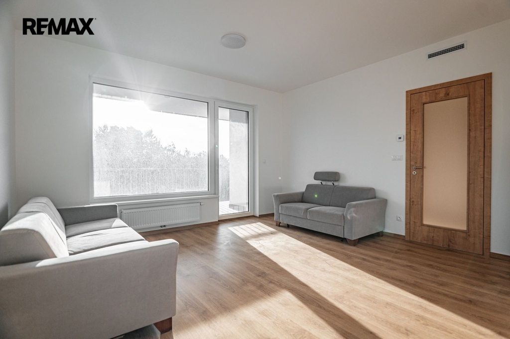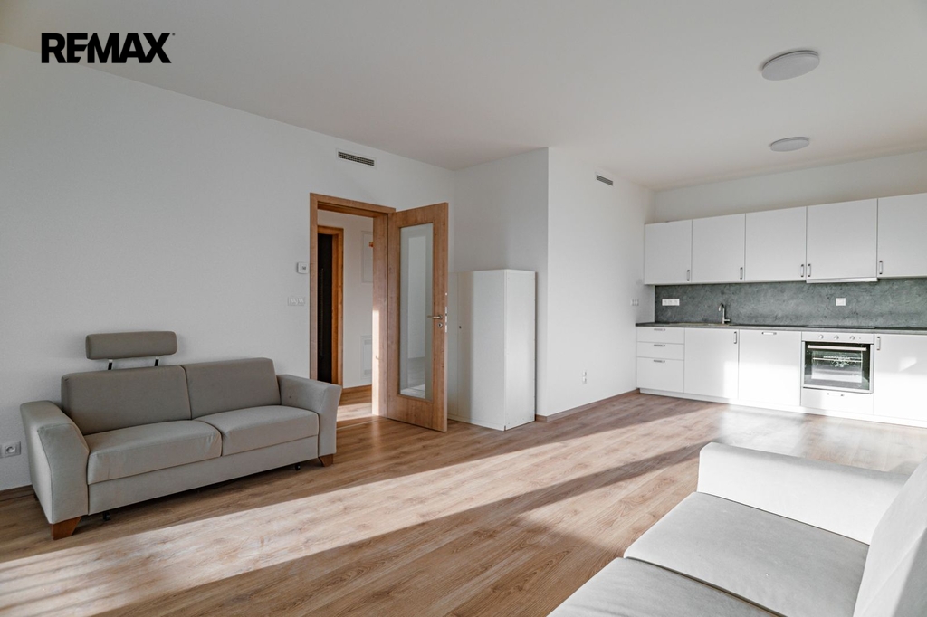 Byt je prakticky řešen a nabízí prostorný obývací pokoj s kuchyňským koutem, samostatnou ložnici, koupelnu s vanou a toaletou, komoru s přípojkou na pračku a vstupní chodbu. Moderní kuchyňská linka je vybavena vestavěnými spotřebiči včetně trouby, myčky, sklokeramické varné desky a digestoře. Díky rohovému umístění a západní orientaci je byt velmi světlý a vzdušný.