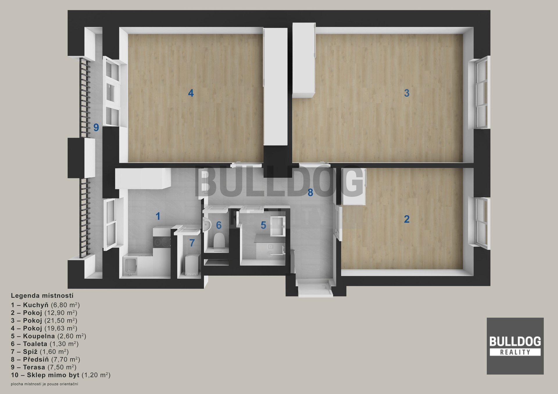 | Dispozice/podlahová plocha: | 3+1/83 m² |