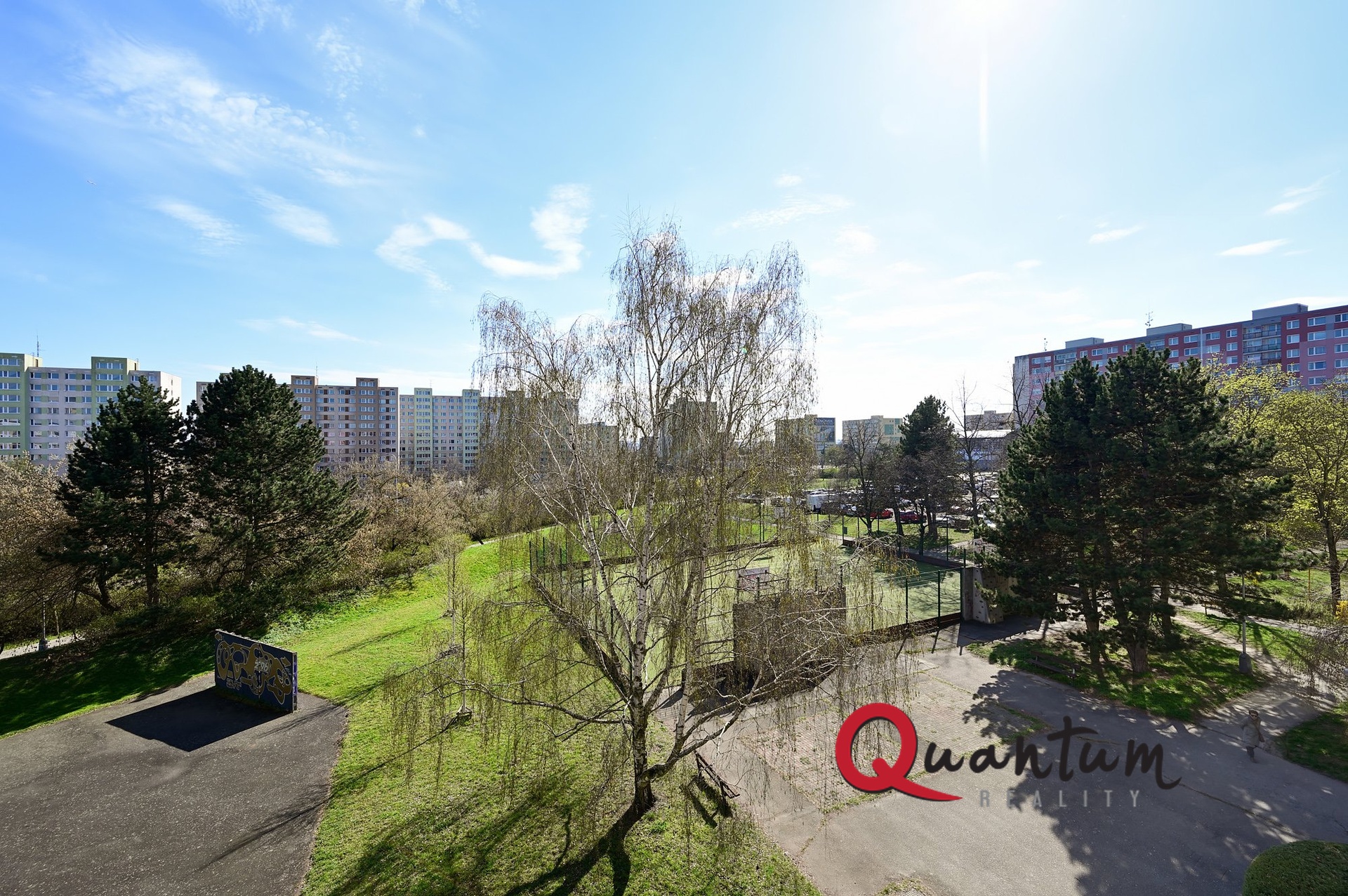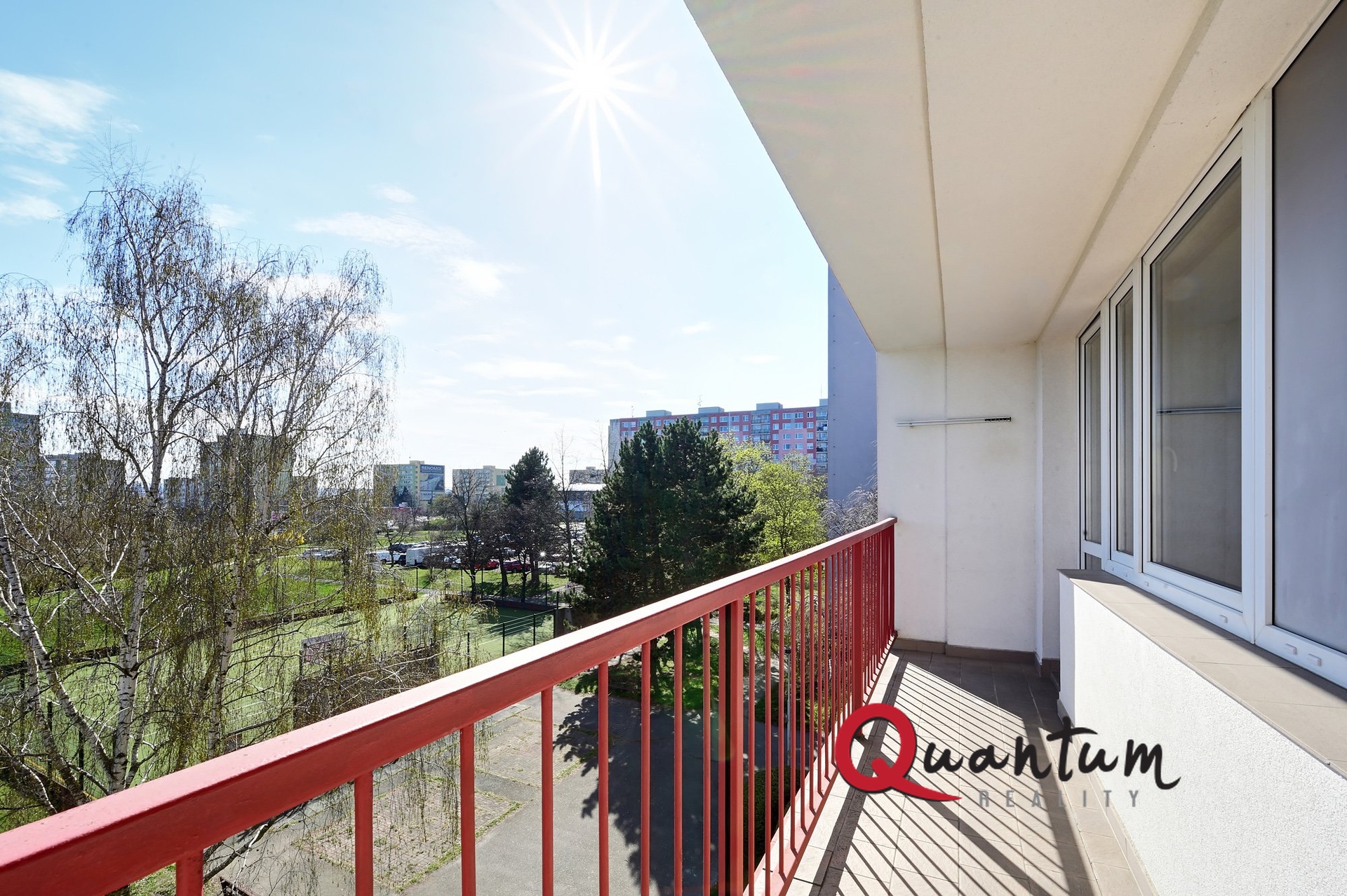 Optimální orientace na světové strany - okna obývacího pokoje (lodžie) a kuchyně směřují na jih, okna obou ložnic na sever.