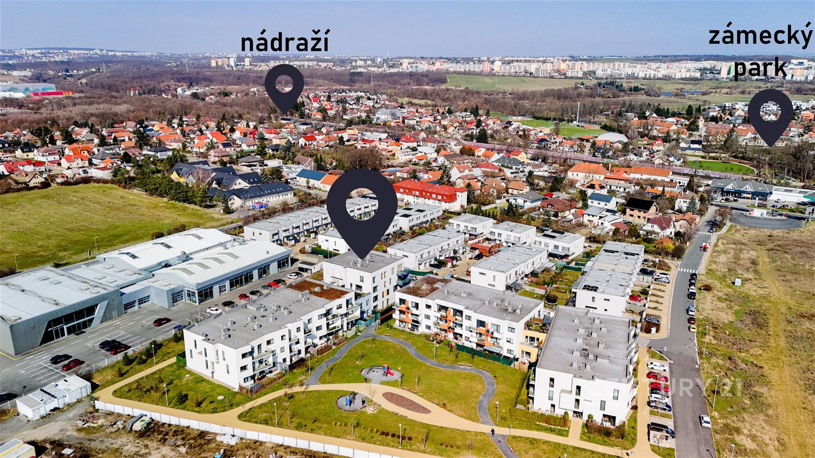 Přímo u domu je dětské hřiště, v lokalitě široká občanská vybavenost (supermarket, státní i soukromá jazyková mateřská a základní škola, zdravotní středisko, lékárna, několik restaurací včetně restaurace s pivovarem přímo u zámeckého parku). V docházkové vzdálenosti (8 minut) je vlakové nádraží PrahaDolní Počernice, ze kterého jste za 13 minut na Masarykově nebo Hlavním nádraží, vlakové spojení až 6x za hodinu. Krásný zámecký park sousedící s největším pražským rybníkem je 7 minut chůze od domu.