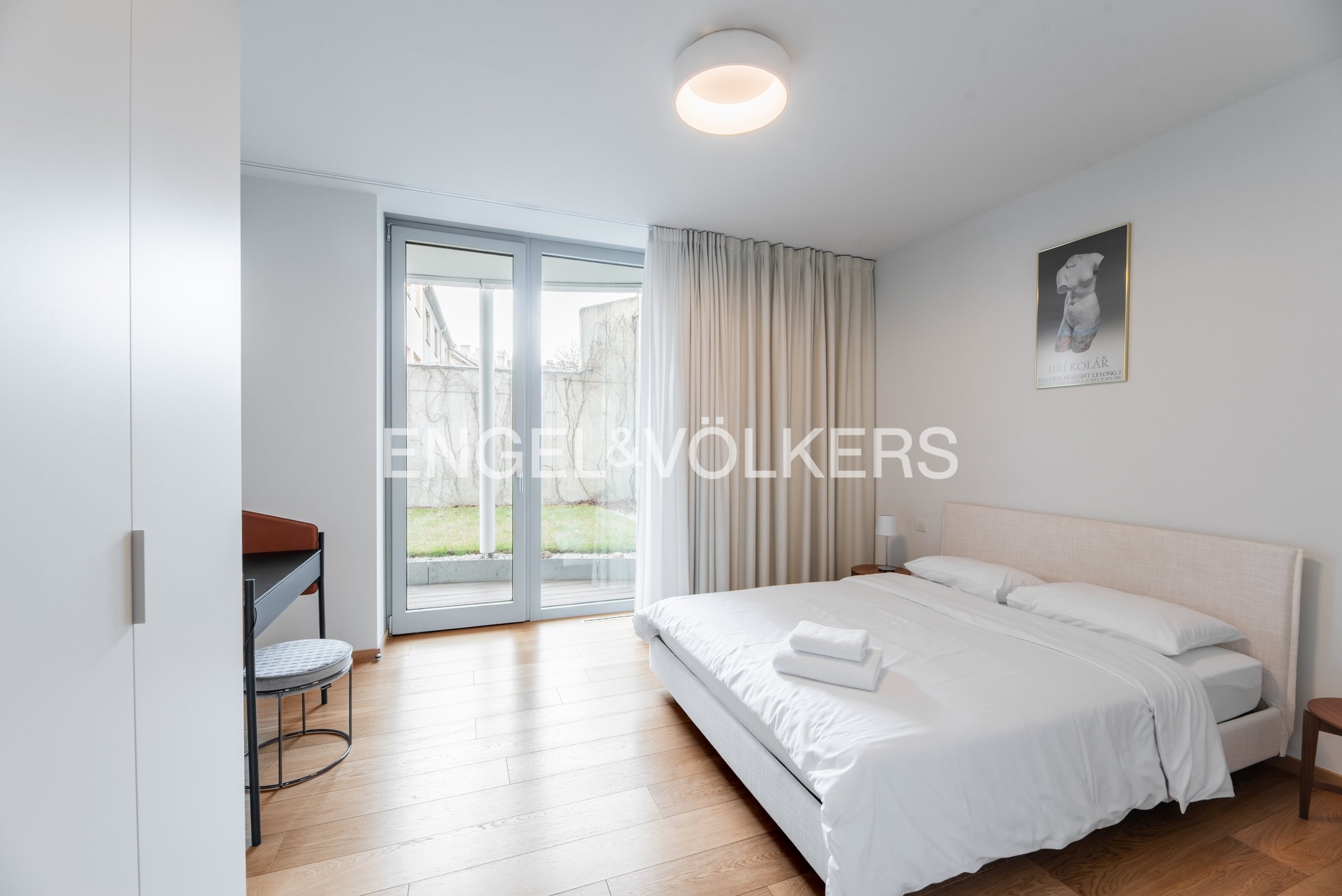 Designový byt 2+kk s terasou a zahradou v rezidenci Ellipsis