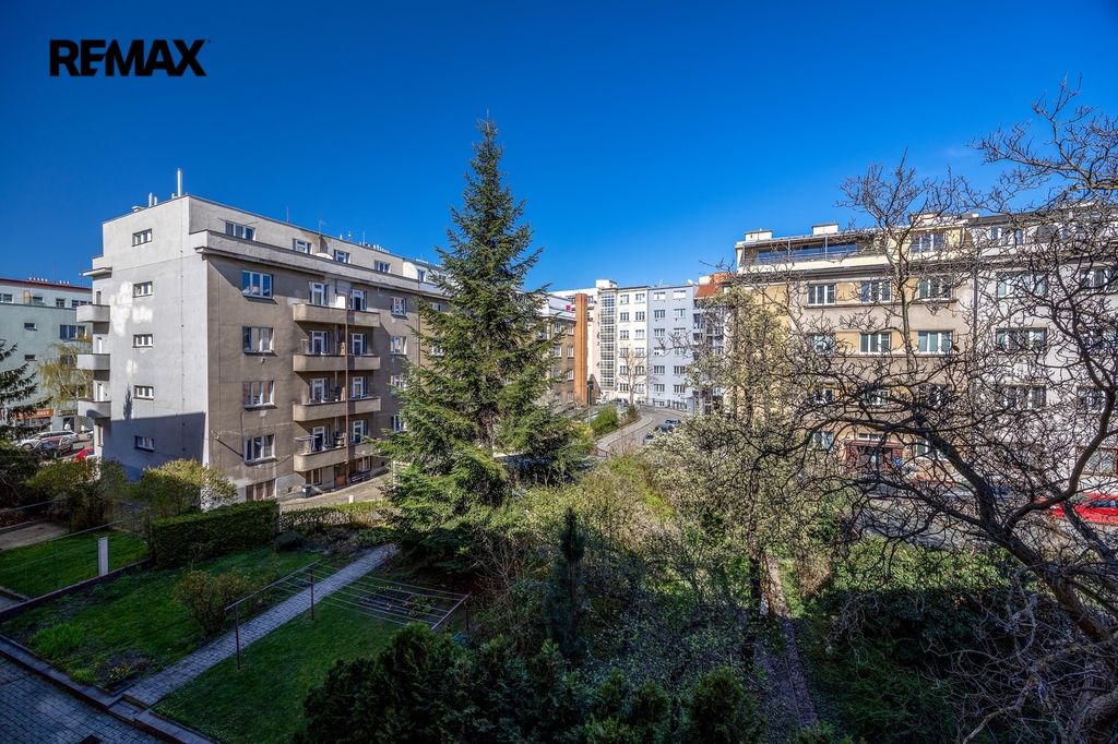 Byt se nachází ve 2. patře cihlového domu a je orientován do klidného vnitrobloku se zelení, což zajišťuje příjemné a tiché bydlení.