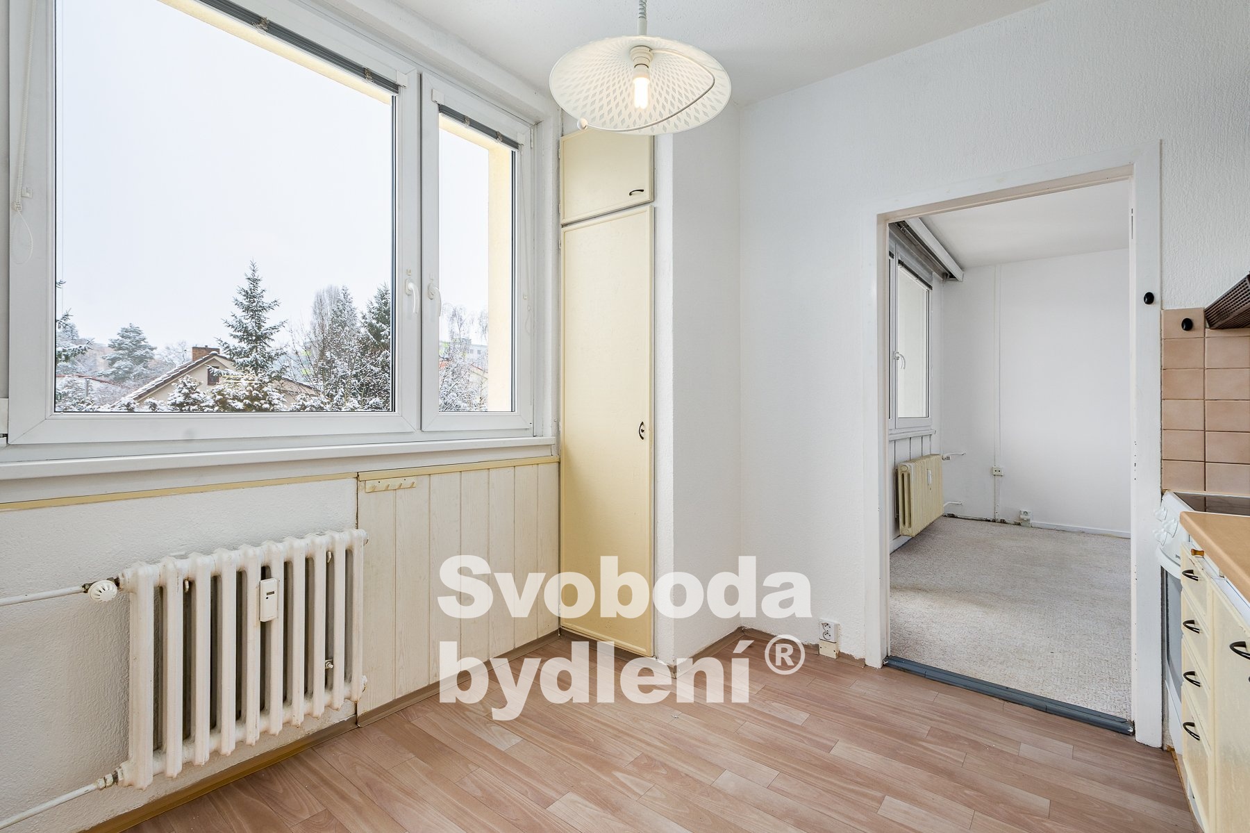 Byt nabízí příjemné otevřené výhledy do dvou stran, na jihovýchod ( ložnice) a jihozápad (obývací pokoj s lodžií, druhá ložnice a kuchyně). Díky tomu je celý prostor světlý a působí velmi vzdušným dojmem. Koupelna a samostatná toaleta jsou umakartové. V kuchyni je instalována původní kuchyňská linka. Byt disponuje dostatkem úložných prostor v podobě původních vestavných skříní, komory v bytě a také sklepní koje (cca 2,31m2) v 1.PP domu.