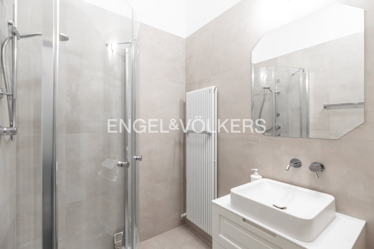 Byt prošel kompletní rekonstrukcí ve vysokém standardu a zaujme především důrazem na detail – renovované štuky na stropech, mosazné prvky na radiátorech a v koupelnách či masivní dřevěné podlahy ve třech vzorech dodávají interiéru jedinečný charakter. K bytu náleží sklep. Parkování je možné zajistit za příplatek v zakladači cca 200 m od domu.