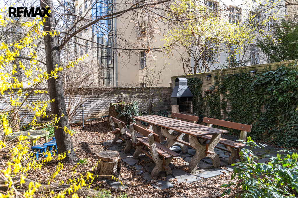 Skutečným klenotem je privátní zahrada s posezením a menším dětským hřištěm ve vnitrobloku, navržená ateliérem Ing. arch. Ferdinanda Lefflera. Ulice Kamenická nabízí to nejlepší z Letné – pár minut od Letenských sadů, v obklopení vyhlášených bister a obchodů, s centrem Prahy na dosah.