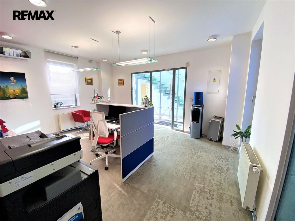 Ve výhradním zastoupení majitele nabízíme k pronájmu celou budovu s kompletně vybavenými dvěma patry kancelářských prostor v reprezentativním designu, s kompletním zázemím o užitné ploše 282m2 + zabezpečené parkování pro sedm osobních vozidel ve vnitrobloku, vše na pozemku o výměře 389m2 a na ideálním viditelném místě na hlavní ulici Náchodská v Horních Počernicích, Praha 9.