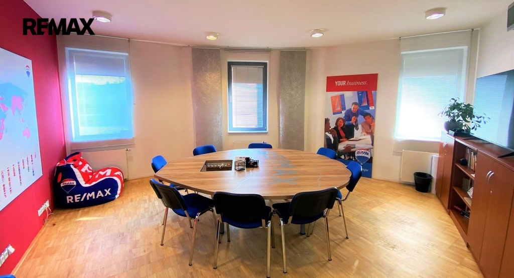 Dispoziční řešení: plně vybavený kancelářský interiér umístěný v 1.NP a 2.NP je rozdělen na jednotlivé sekce, které mohou sloužit jako samostatné prostory pro jednání či konání brífinků a porad, popř. jako komplexní kancelářský objekt s veškerým zázemím. Díky progresivnímu oddělení jednotlivých částí 1. a 2.NP je možnost samostatného vstupu do objektu z obou stran domu a jejich samostatného využití (dle dohody s vlastníkem).