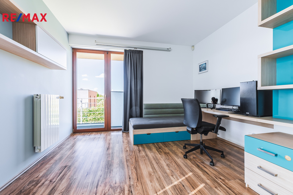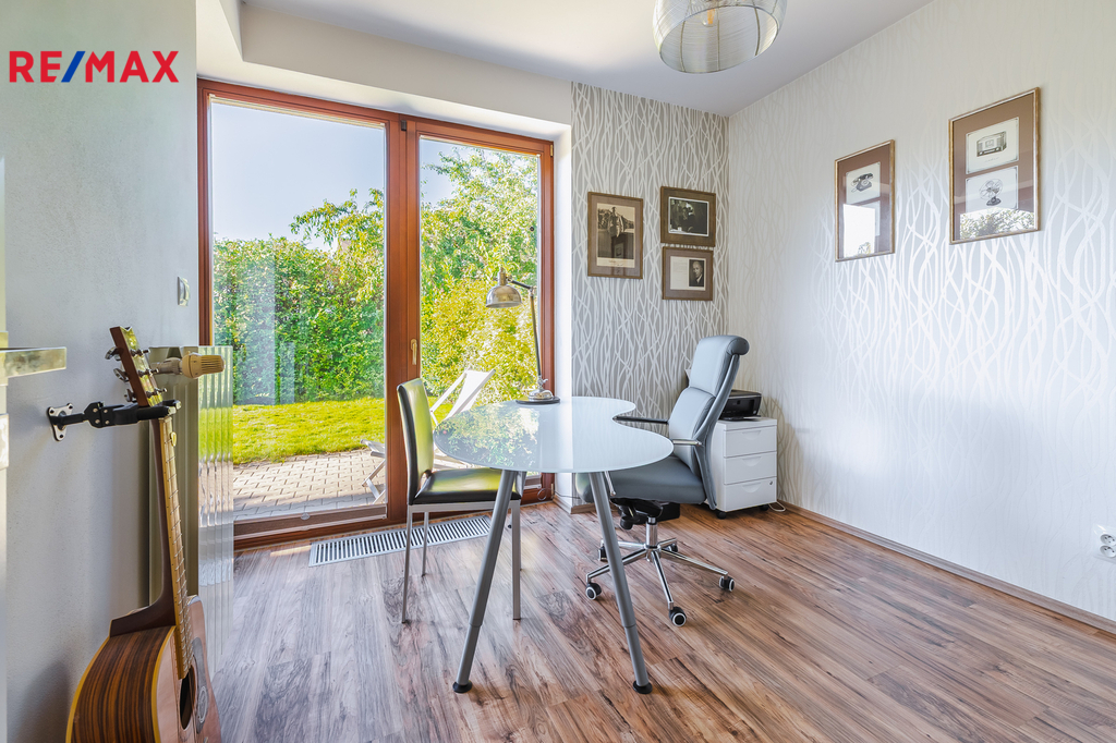 Pokoj využívaný jako pracovna, s přímým vstupem na terasu