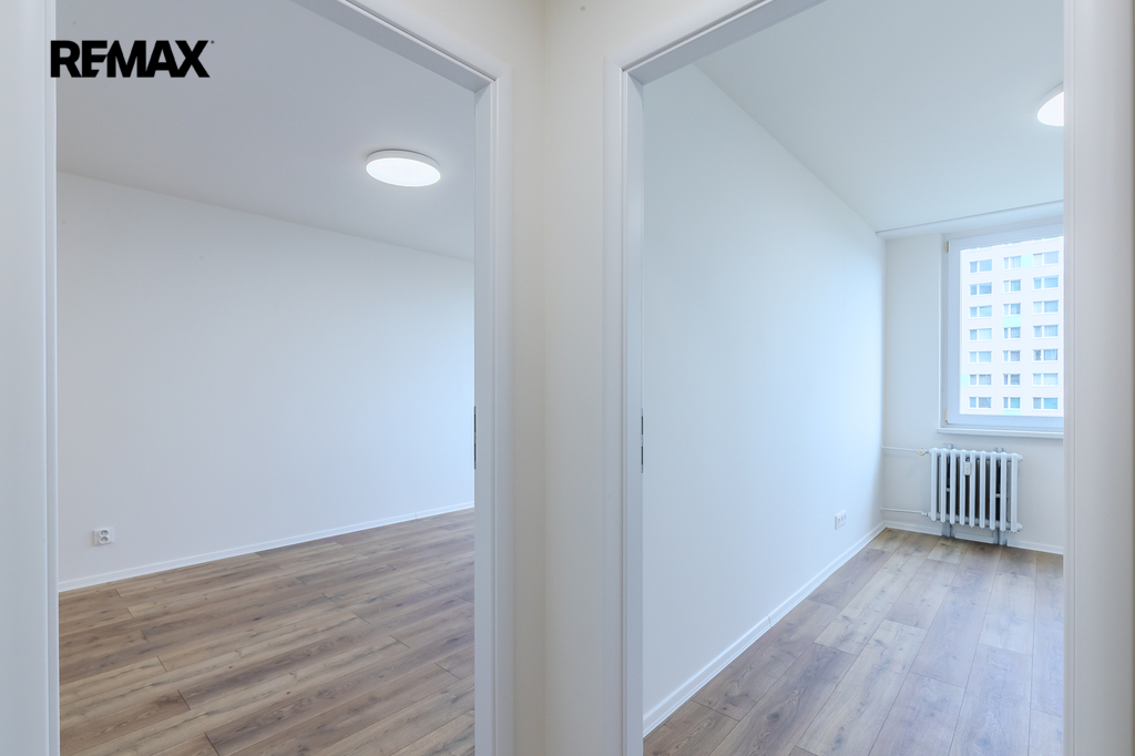 Byt prošel kompletní rekonstrukcí a nabízí příjemné a moderní bydlení. Byt má nové bezpečnostní vstupní dveře a velká plastová okna v obou pokojích orientovaná na severovýchod. Na podlahách je položena plovoucí laminátová podlaha, která dodává bytu moderní a čistý vzhled.