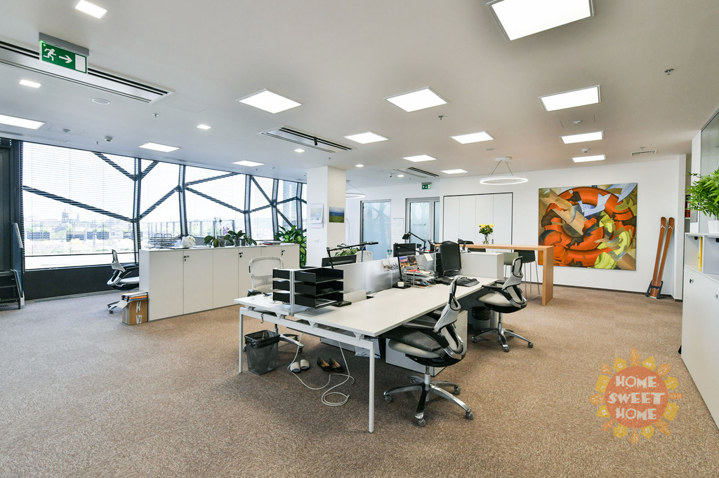 V budově je dále samostatný vstup do kancelářské části budovy s centrální recepcí, 4 panoramatické osobní výtahy pro kancelářskou část budovy, možnost využití skladových prostor v suterénu budovy, bezbariérový přístup, obchodní centrum v budově, restaurace, kavárny, služby. Pro vstup do budovy je elektronický kartový přístupový systém a CCTV v budově; přístup 24/7/365, kamerový systém ve společných prostorách a ostraha objektu 24/7/365. Jedná se o vzorové fotografie. Možnost parkovacího stání v budově za poplatek. Prostory jsou k dispozici.