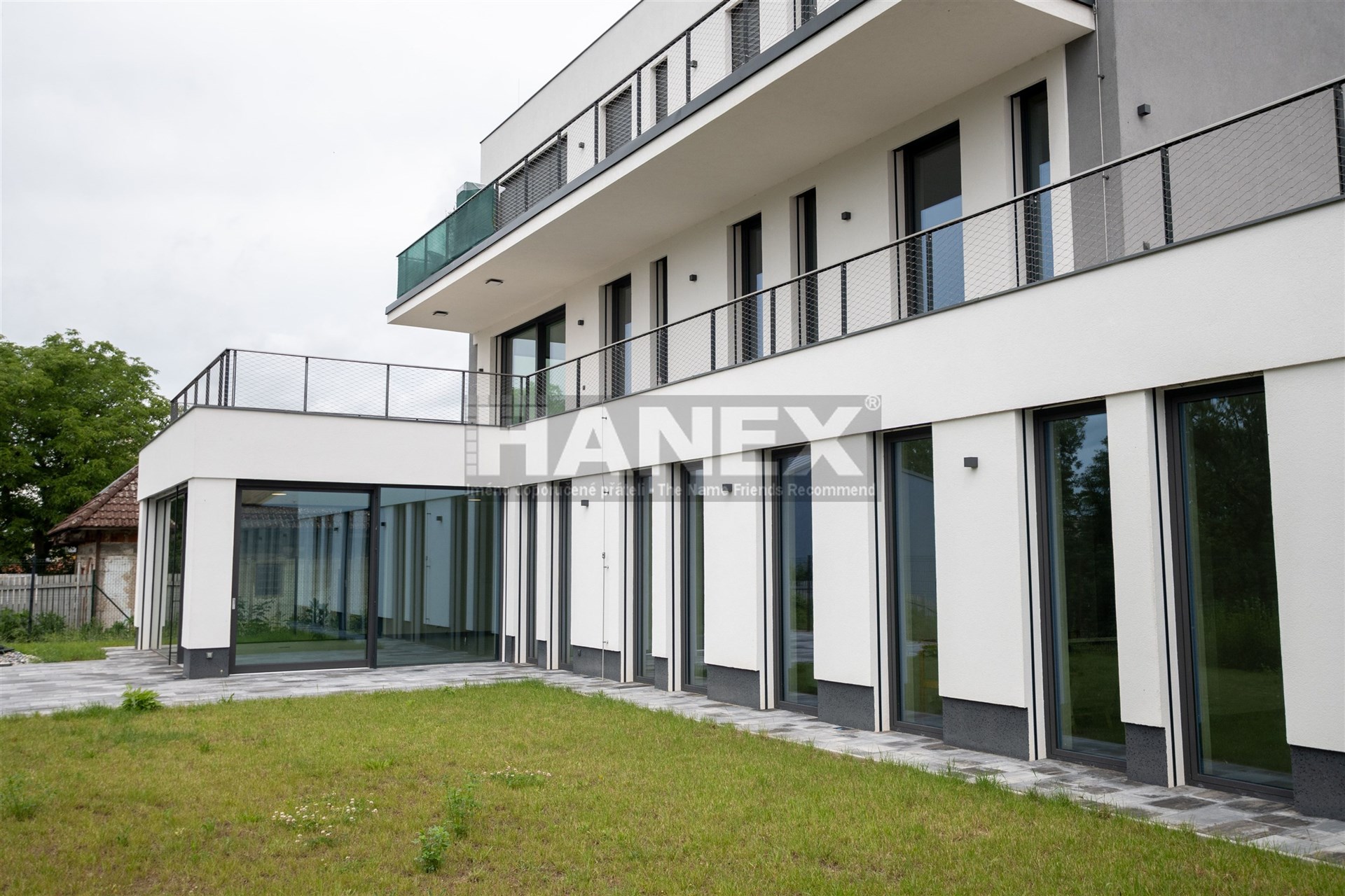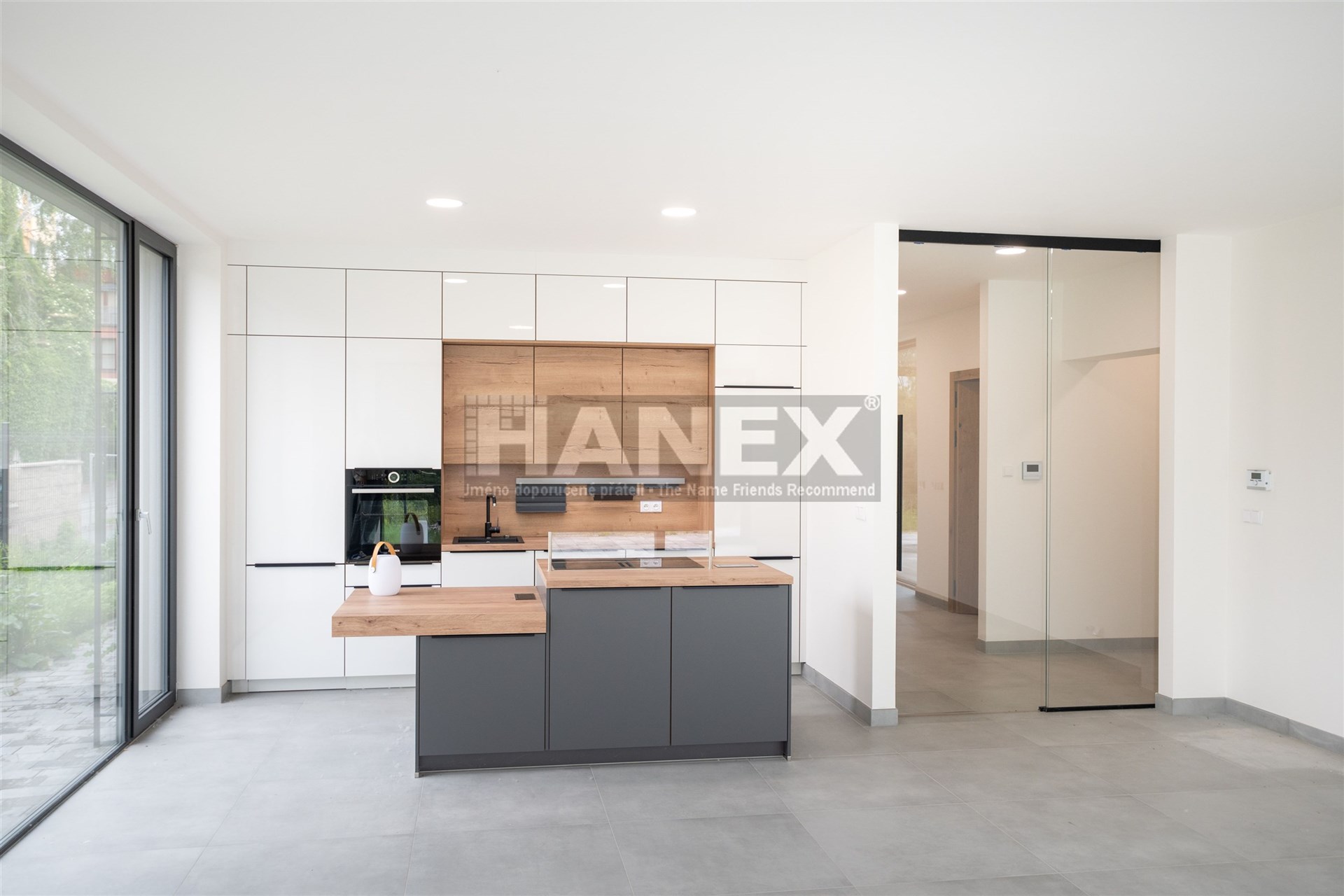 Přehlednou dispozici bytu tvoří obývací pokoj s kuchyňským koutem, komorou, třemi ložnicemi a pracovnou. K bytu patří rozhlehlá zahrada s terasou a dvě krytá parkovací stání v garáži s přípravou pro dobíjení elektromobilu.