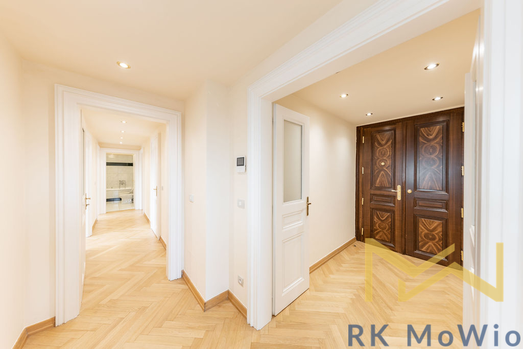 Na pronájem nabízíme částečně zařízený nadstandartní mezonetový byt o dispozici 5+1 o podlahové ploše 235 m² s terasami o výměře 50 m² a sklepem o ploše 6 m², situovaný ve 4. a 5. patře (5. a 6. nadzemní podlaží) budovy s výtahem, denní recepcí a údržbářem, v ulici Újezd na Praze 5 – Malá Strana.