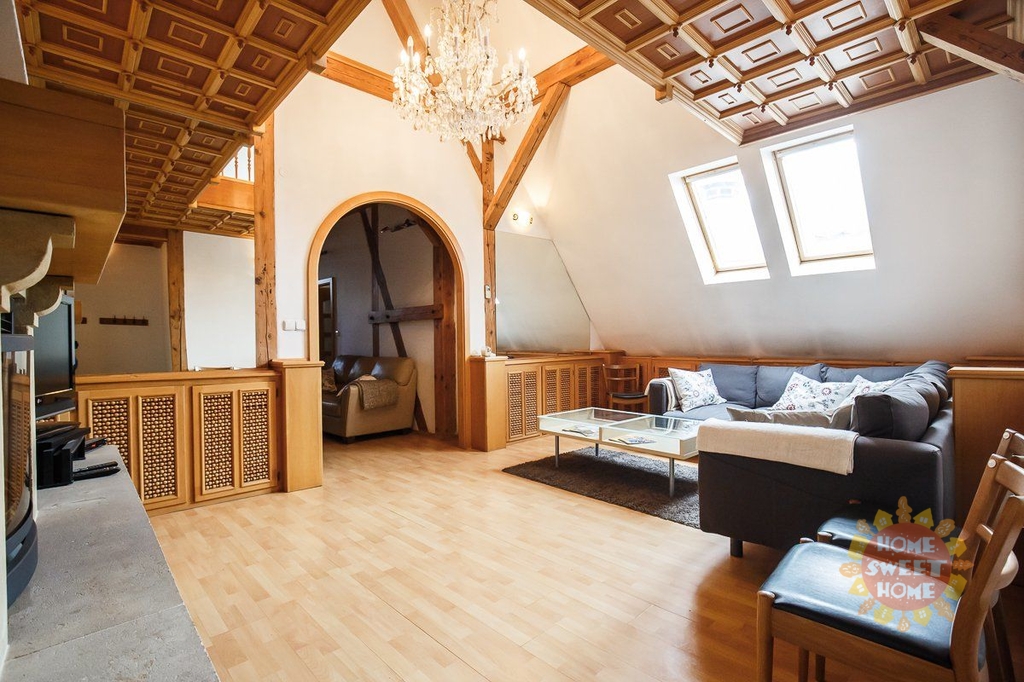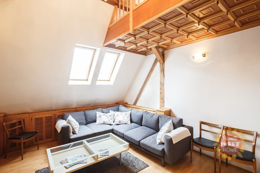 Luxusně zařízený byt se nachází v 5., 6., 7. a 8. patře cihlového domu (s výtahem) v samotném centru Prahy nedaleko Staroměstského náměstí. Rozloha bytu je 219 m2. Byt je zařízený moderním nábytkem a elektrospotřebiči. V případě zájmu je možné byt pronajmout nezařízený. Nachází se zde dvě kuchyně - velká v přízemí plně vybavená všemi spotřebiči a menší ve 3. patře, která nemá spotřebiče. V bytě se nachází 3 koupelny - ve dvou z nich jsou masážní vany a ve třetí koupelně pak pouze masážní sprchový kout. V bytě je k dispozici krb. Zaveden je bezdrátový internet, satelitní televize a telefon, nechybí klimatizace. Perfektní lokalita s vynikající dopravní dostupností a občanskou vybaveností. V okolí bytu se nachází množství kulturních památek, divadla či starobylý židovský hřbitov.