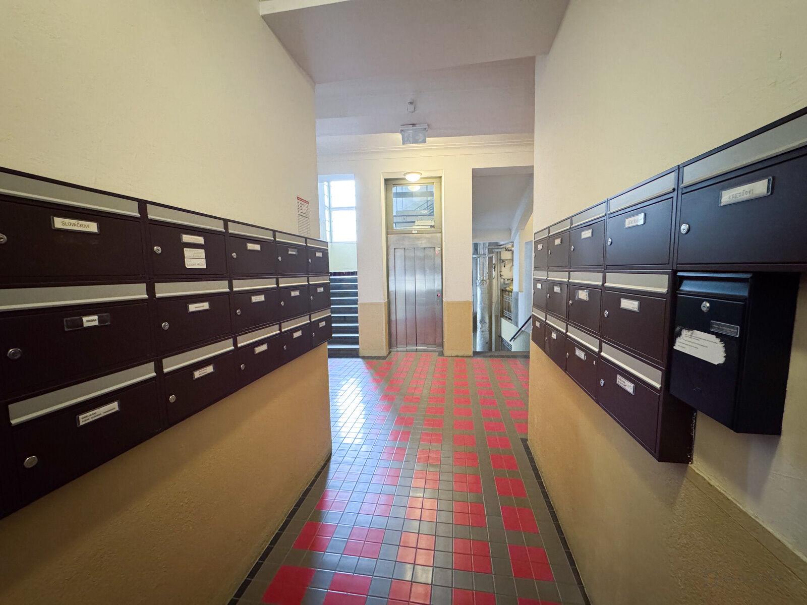 Byt je nabízen bez kuchyňské linky. V blízkosti domu se nachází tramvajová zastávka Palackého náměstí a metro B - Karlovo náměstí.