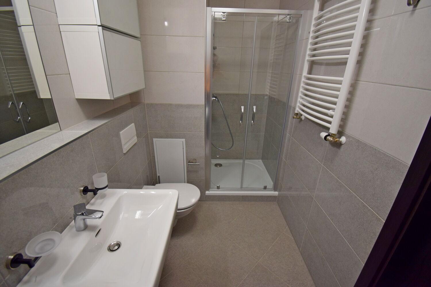 Útulný, téměř nový byt 1+kk s terasou s krásným výhledem v novostavbě atraktivní lokality komplexu Britská čtvrť u stanice metra Stodůlky. Do pokoje s moderní, plně vybavenou kuchyňskou linkou je možné dodat bílou sestavu pod TV a rozkládací sedačku. Koupelna se sprchovým koutem je společná s WC; velkou výhodou jsou prostorné vestavěné skříně v předsíni bytu i vlastním pokoji a velký sklep (8 m2) v suterénu domu. Velkou předností je blízkost dvou nákupních center Metropole Zličín a Avion Shopping PARK s veškerou občanskou vybavenosti. Výborná dopravní dostupnost na Pražský okruh i letiště Václava Havla. Parkování před domem. K nastěhování ihned, po dohodě možno i později.