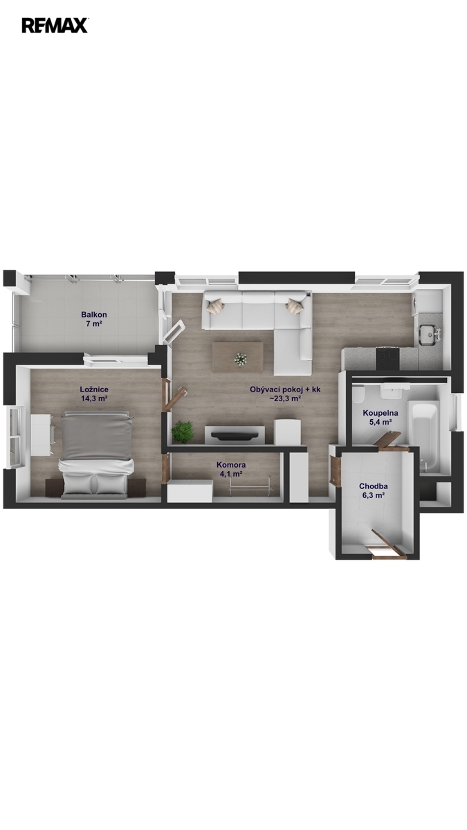 | Dispozice/podlahová plocha: | 2+kk/62 m² |