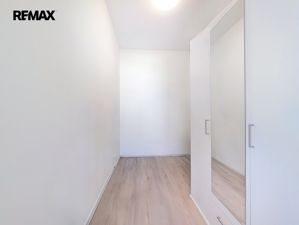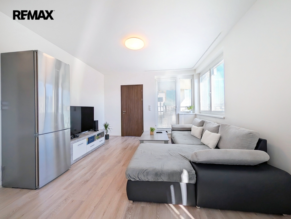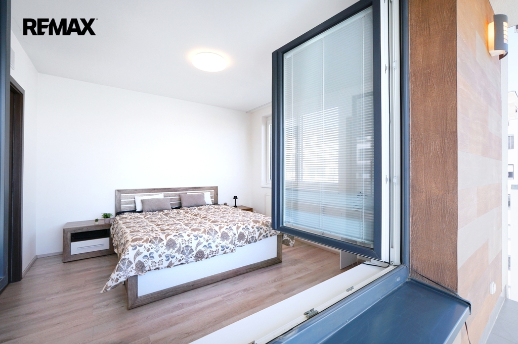 Dispozice je řešena velmi efektivně – obývací pokoj se zařízeným kuchyňským koutem a přímým vstupem na balkón, samostatná ložnice s přístupem do šatny, prostorná chodba a koupelna s vanou a otopným žebříkem. Velkým benefitem jsou úložné prostory řešené na míru, které dávají bytu nadstandardní funkčnost pro každodenní život. Díky orientaci na více světových stran (jih, východ, západ) je byt přirozeně světlý a vzdušný po celý den.