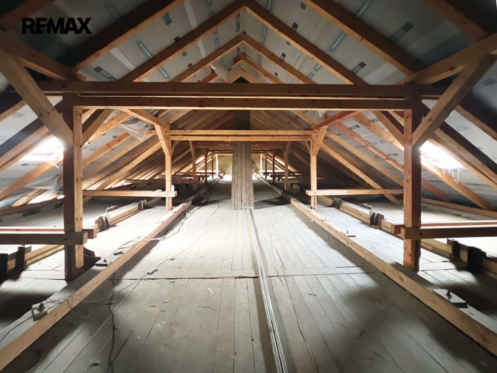 Prostor sokolovny s mimořádnou výškou stropu nabízí možnost vytvořit dvě plnohodnotná podlaží navíc, což výrazně navyšuje potenciální podlahovou plochu. Volná půda umožňuje realizaci vestavby v plném rozsahu zastavěné plochy, což otevírá cestu k dalším bytovým jednotkám či loftovým prostorům. Tyto parametry umožňují navrhnout projekt, který maximalizuje ekonomický výnos a zároveň respektuje urbanistické limity lokality.