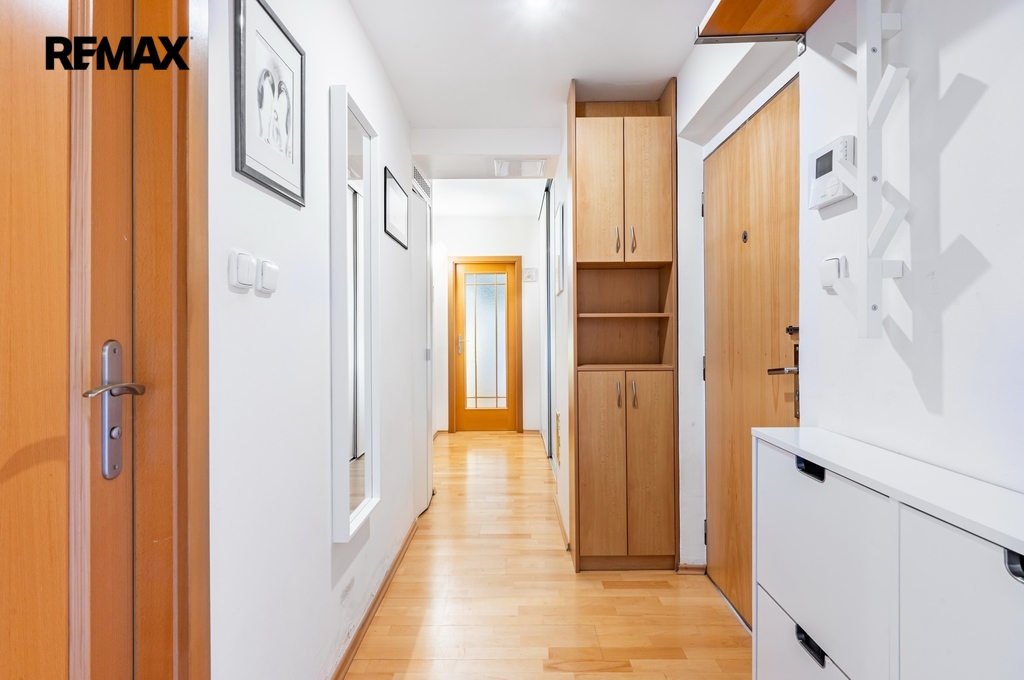 Dispozičně skvěle řešený byt tvoří prostorný obývací pokoj s plně vybaveným kuchyňským koutem a jídelní částí (30,6 m²), ložnice se vstupem na lodžii (16,2 m2), neprůchozí pokoj vhodný jako pracovna, či dětský pokoj (11,4 m2), koupelna s vanou a toaletou (4,5 m2) a vstupní chodba s množstvím úložných prostor (9,5 m2). Z lodžie i oken všech pokojů se otevírá uklidňující výhled do okolní zeleně, kde je naprostý klid a harmonie.