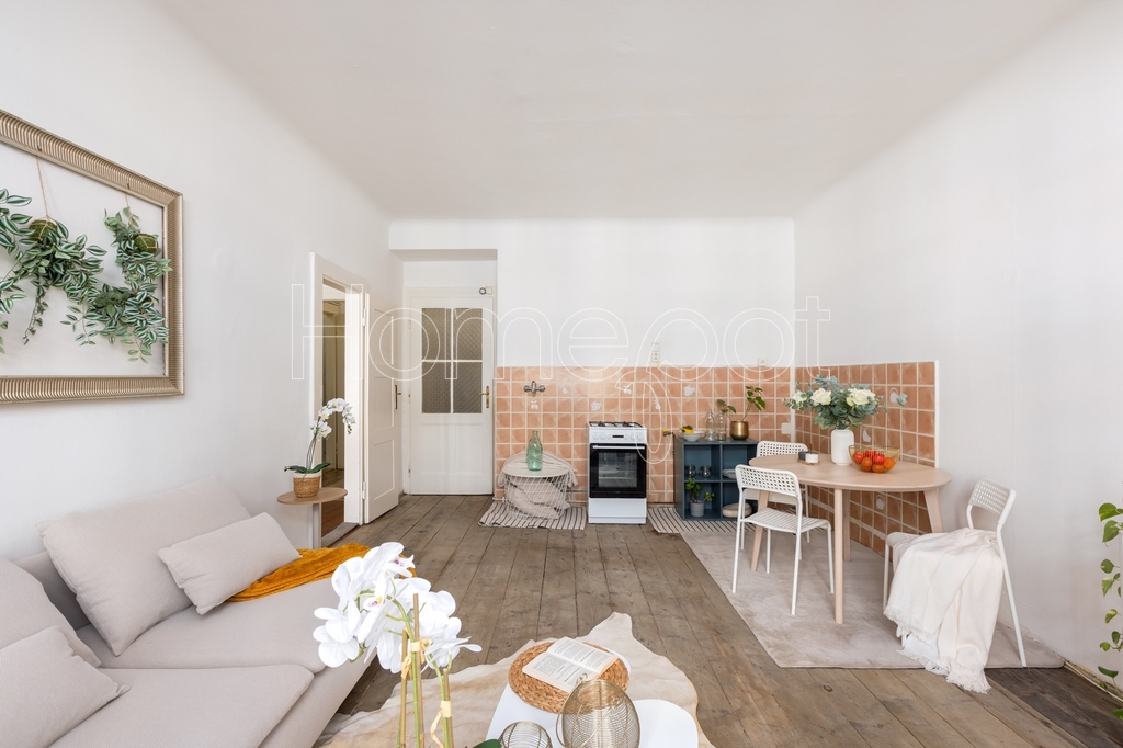 Byt je v původním, udržovaném stavu a je připravený k rekonstrukci – a právě to je jeho největší přednost. Můžete si ho upravit tak, aby stoprocentně vyhovoval vašim potřebám. Podlahy jsou původní, místy vržou, nejsou perfektní – ale právě v tom je jejich kouzlo. Plynový sporák, který je majetkem bytového družstva a bude potřeba ho vrátit, vás tu každopádně strašit nebude. Jakmile bude byt váš, poputuje zpátky tam, kam patří. Byt doplňuje koupelna se sprchovým koutem, samostatná toaleta, předsíň a nenápadná spíž, která pojme všechno, co nechcete mít na očích. Součástí je i velkorysý sklep.