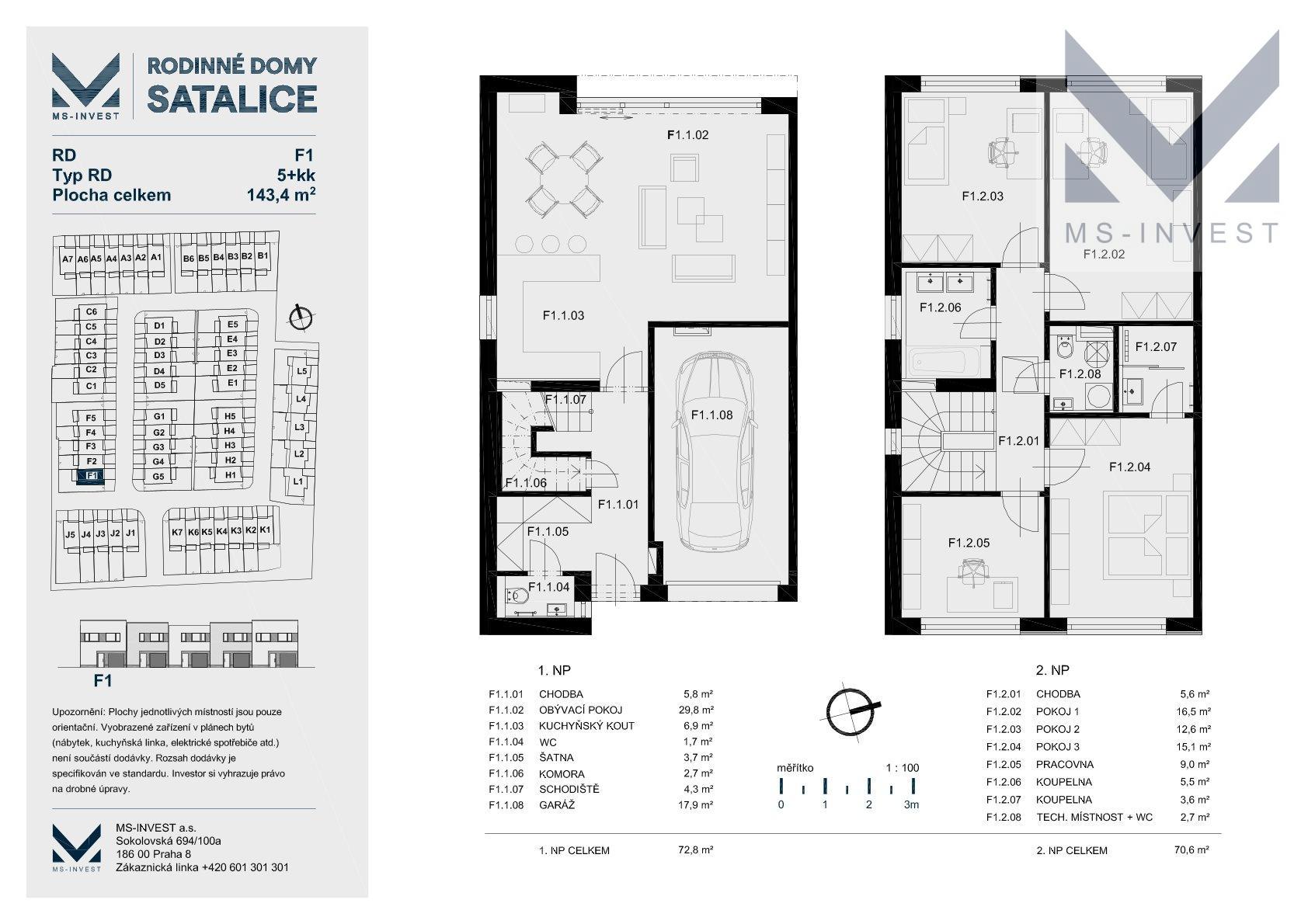 V rámci developerského projektu Rodinné domy Satalice vznikne celkem 48 řadových rodinných domů provedených ve třech variantách s dispozicemi 4+kk až 5+kk, užitnou plochou od 127 m2 až 160 m2. Pozemky s výměrou až 363 m2 nabídnou dostatek prostoru pro celou rodinu. Domy jsou již dokončeny, zkolaudovány a připraveny k nastěhování. Prodej přímo od developera.