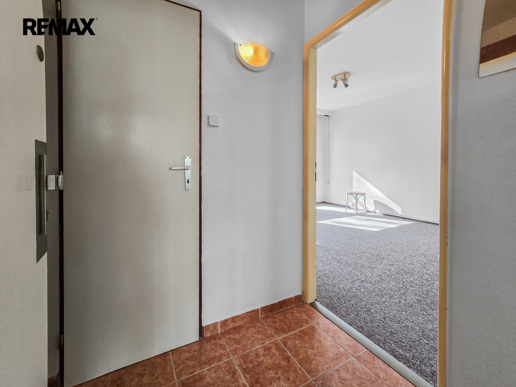 Po vstupu do bytu se nachází předsíň o výměře 2,48 m². Z ní je přístup do hlavního pokoje o výměře 19,76 m². Dále je zde spíž o výměře 1 m², samostatné WC o výměře 0,97 m² a koupelna o výměře 2 m².