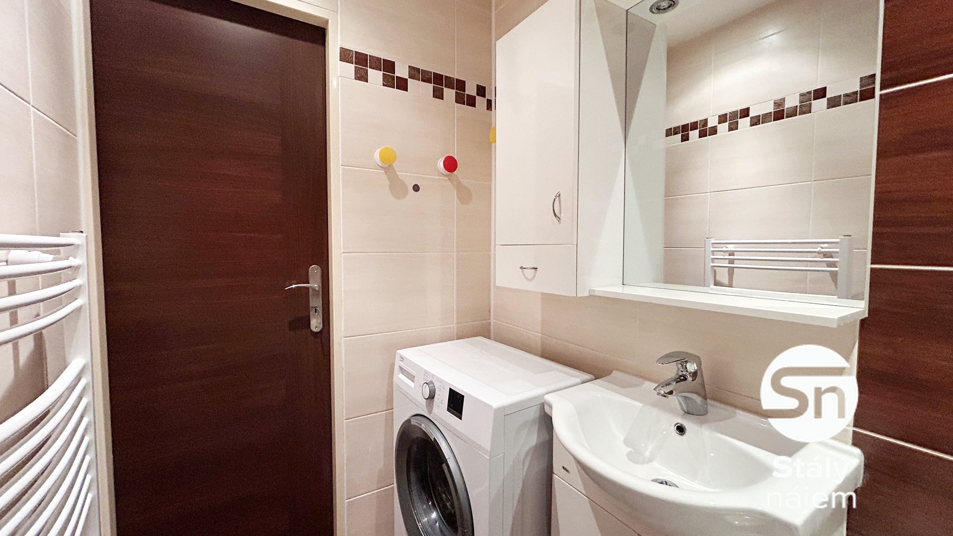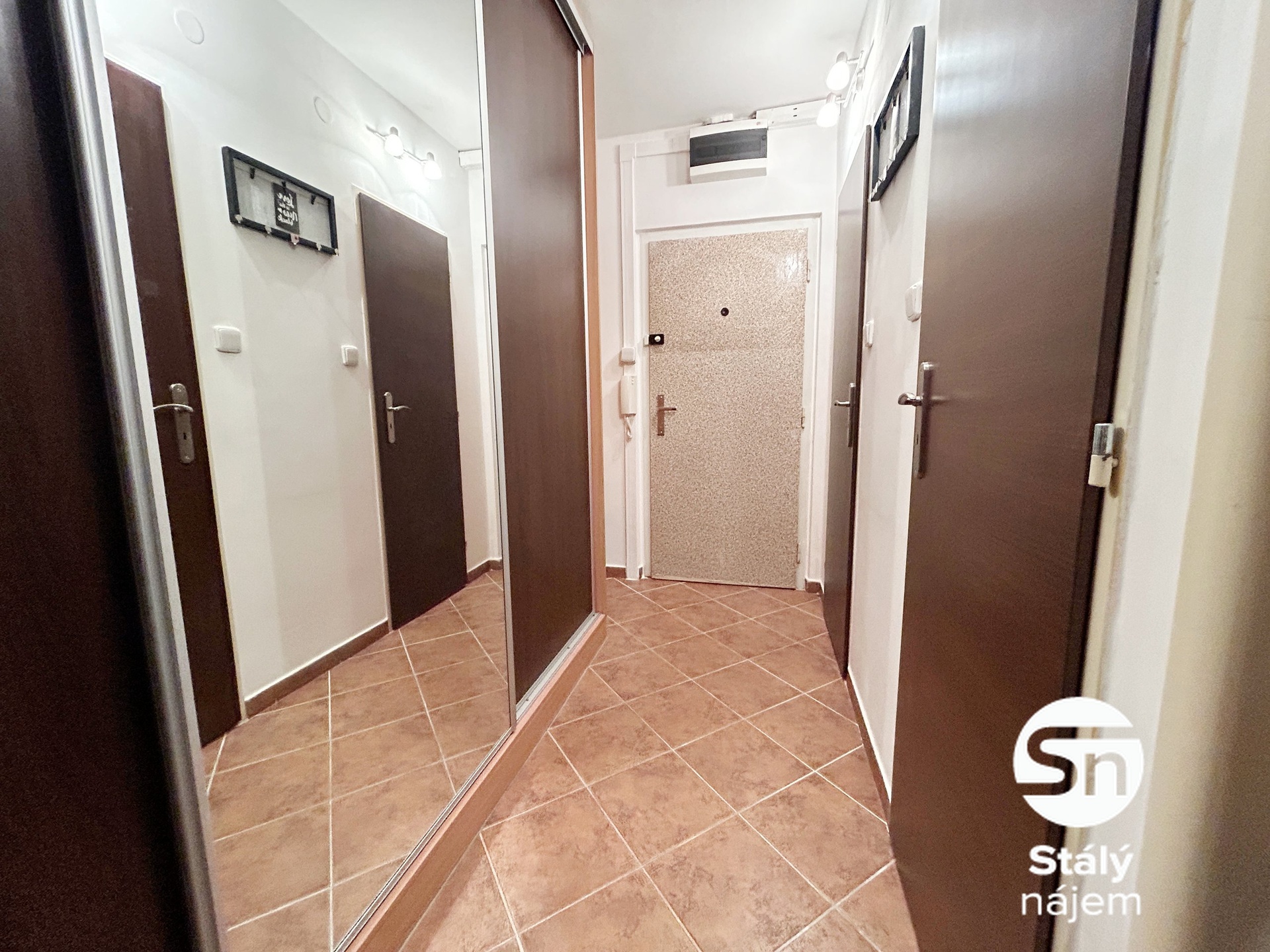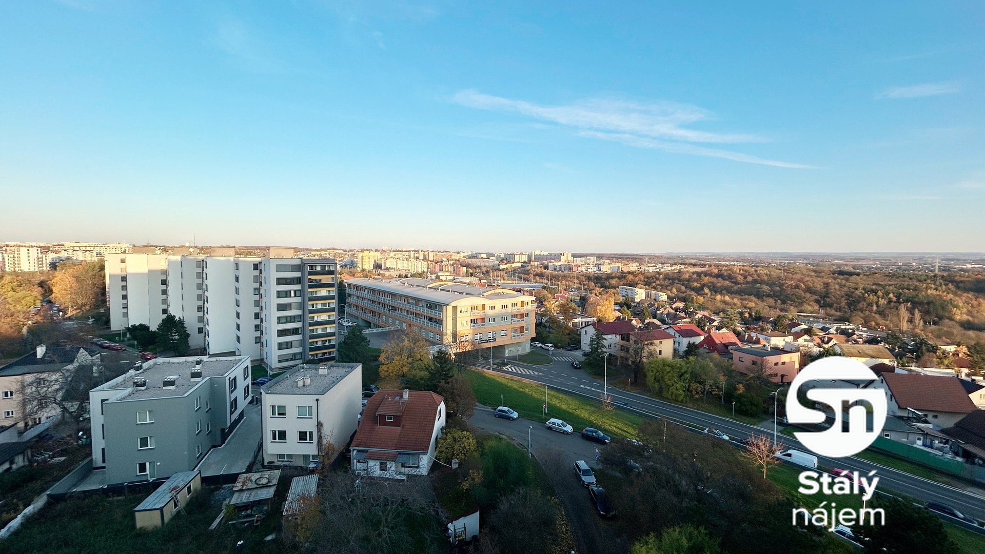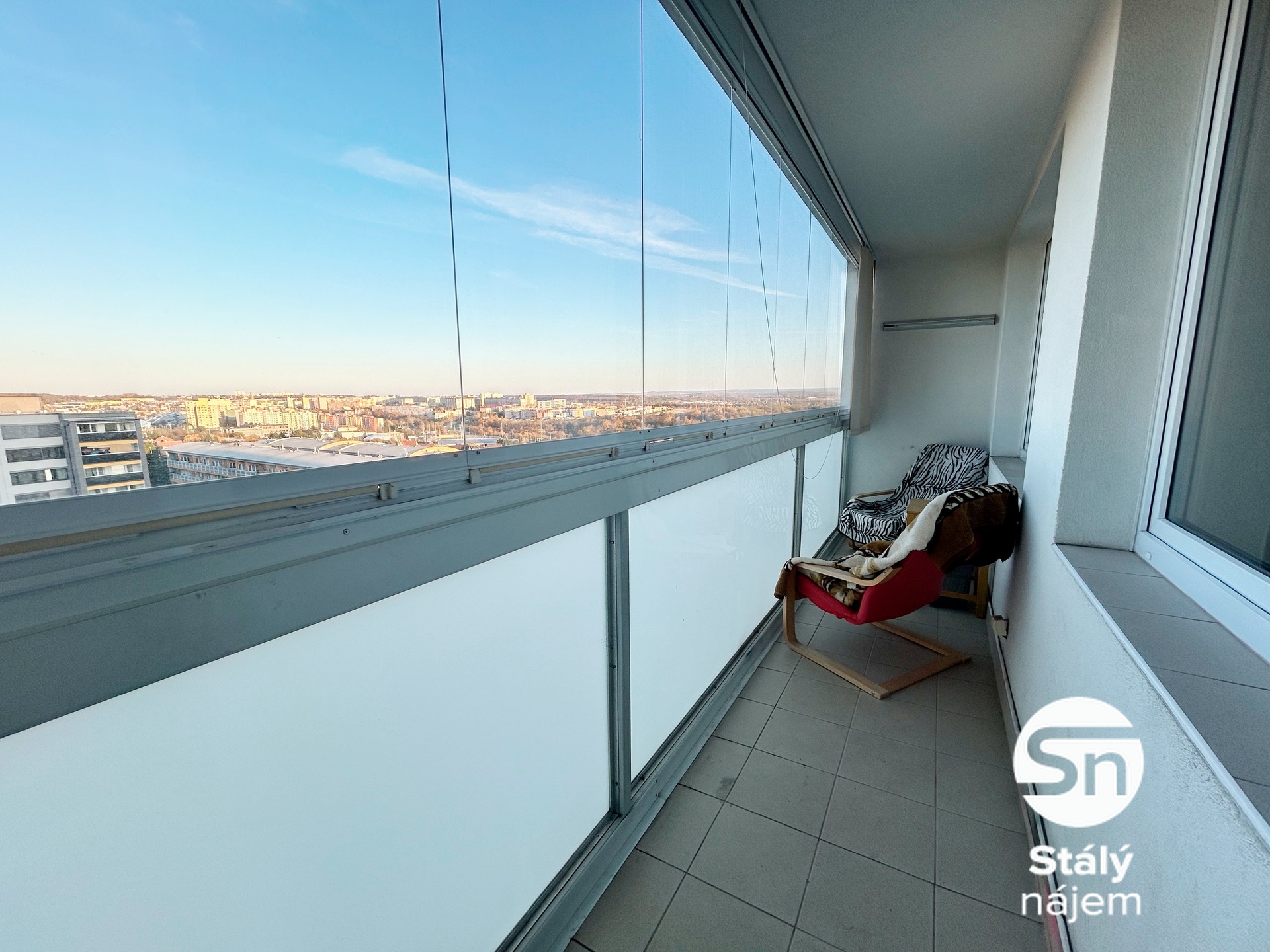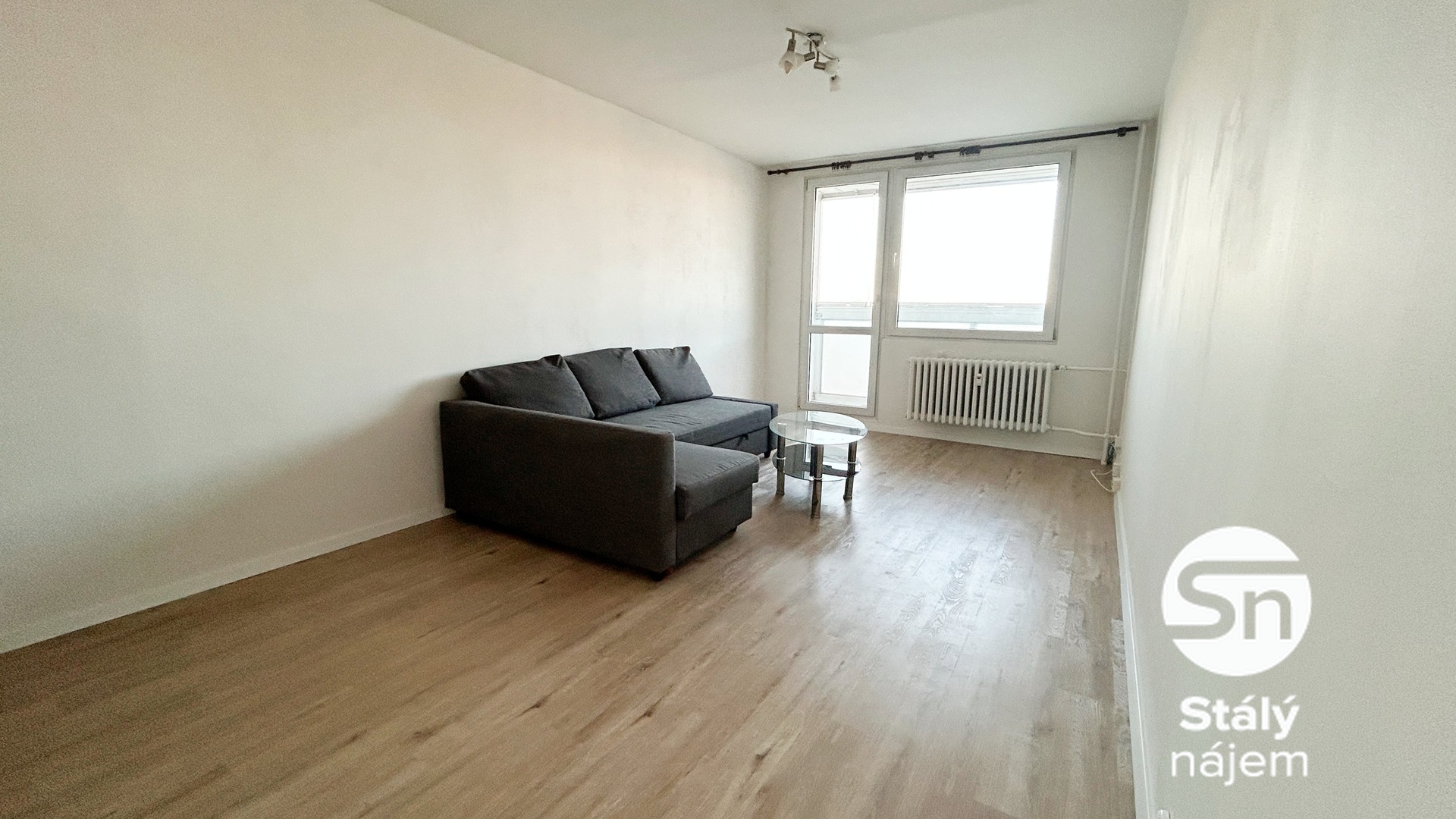 Nabízíme k podnájmu světlý a útulný byt o dispozici 2+kk a ploše 49 m², který se nachází v 10. podlaží s krásným volným výhledem. Obývací pokoj je propojen s balkonem, kde si můžete užívat klid a výhled do okolí, a nabízí pohodlné sezení na gauči a praktický stolek. Kuchyně je vybavena moderní linkou, lednicí s mrazákem a jídelním koutem, ideálním pro společné večeře. Ložnice je nezařízená, takže si ji můžete upravit podle svého vkusu. Koupelna s vanou nabízí prostor pro relaxaci a odpočinek. Chodba je vybavena prostornou skříní, která poskytuje dostatek úložného místa.