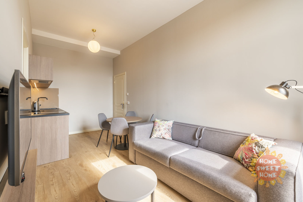 Byt sestává z obývacího pokoje s plně vybavenou kuchyňskou linkou, ložnice a koupelna se sprchovým koutem a toaletou. Součástí domu je recepce 24/7 a prádelna. V ceně poplatků je zahrnuta energie, vysokorychlostní Wi-Fi, 68 televizních kanálů, svoz odpadu, úklid společných prostor, recepce. Možnost pronájmu bytu i se službami za příplatek (pravidelný úklid, výměna ložního prádla, koupelnové kosmetické doplňky v BIO kvalitě).