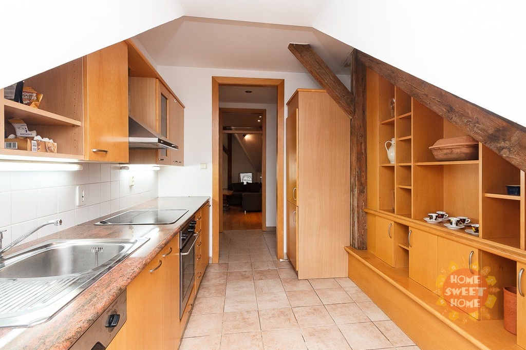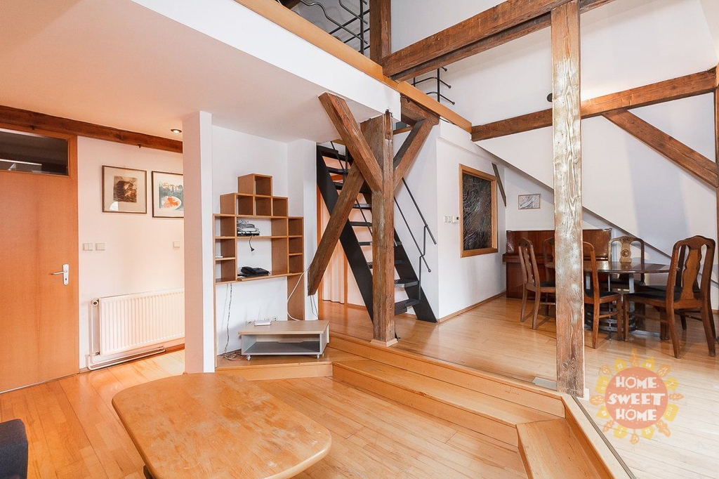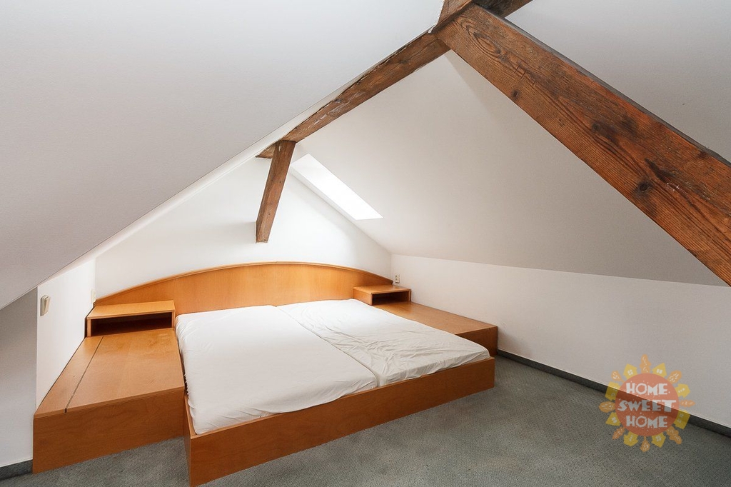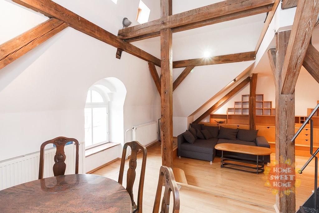 Zařízený mezonetový byt s mnoha původními prvky v atraktivní lokalitě Starého Města s okouzlujícím výhledem až na Pražský hrad. Celková výměra bytu je 120 m². Byt se nachází v pátém patře historického domu bez výtahu. Byt má dispozici 3+1 je je zcela zařízený. Byt je složen z jednoho menšího pokoje, jednoho velkého pokoje s manželskou postelí v otevřeném podkrovním patře, kuchyně a dvou koupelen a je zcela zařízený včetně vestavěné skříně, s dřevěnou podlahou a dlažbou. Kuchyň je vybavena elektrickými spotřebiči. Součástí bytu je pokoj pro hosty s vlastní koupelnou se sprchovým koutem. V jedné ze dvou koupelen je masážní vana. Dům je zabezpečen a napojen na bezpečnostní pult. Ideální umístění v centru Prahy, stanice metra Můstek je vzdálena 2. minuty chůze od domu.