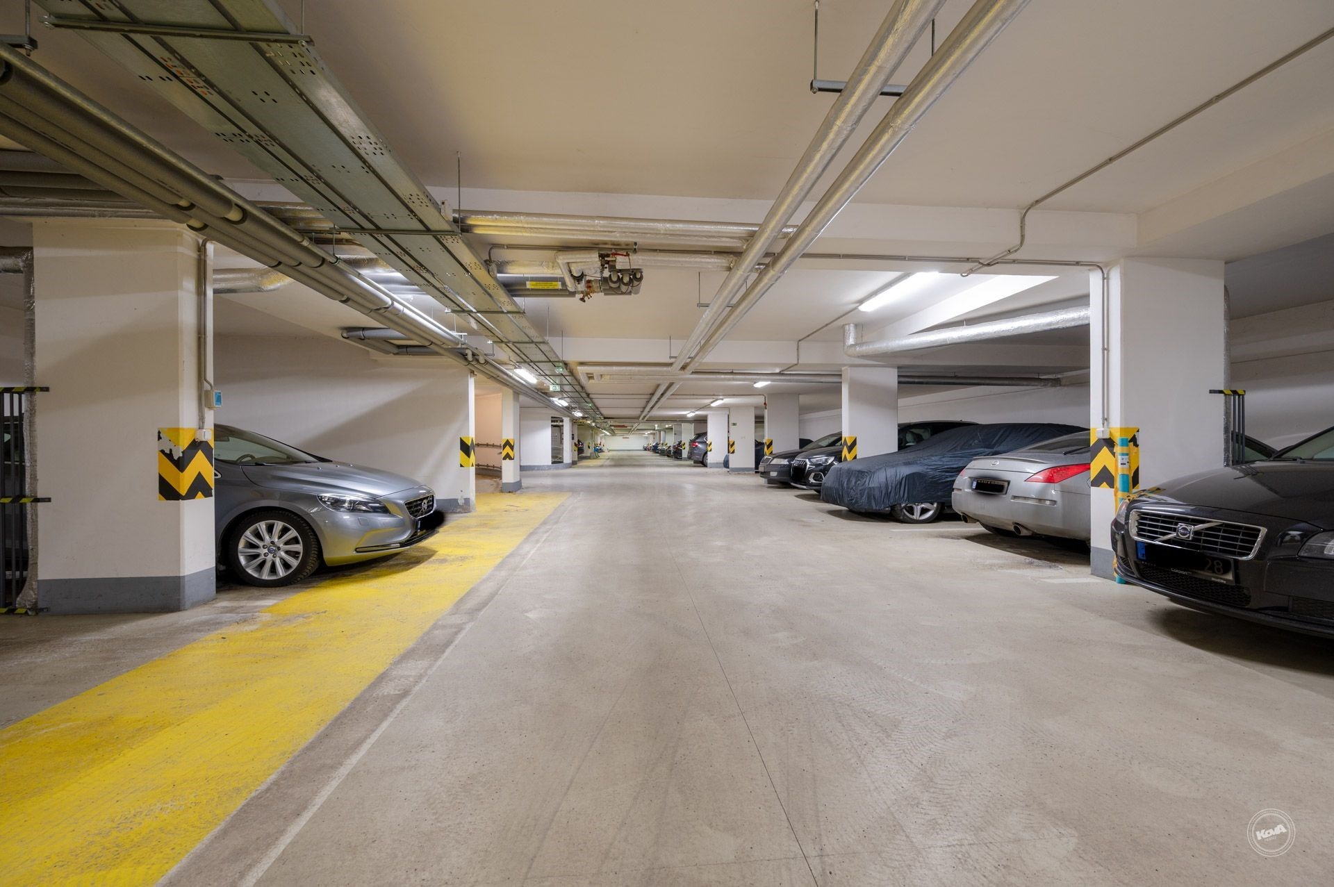 Ke komfortu bydlení přispívá sklepní kóje a především garážové stání v domě, dostupné výtahem – samozřejmost, které se v této lokalitě stává rozhodujícím faktorem.