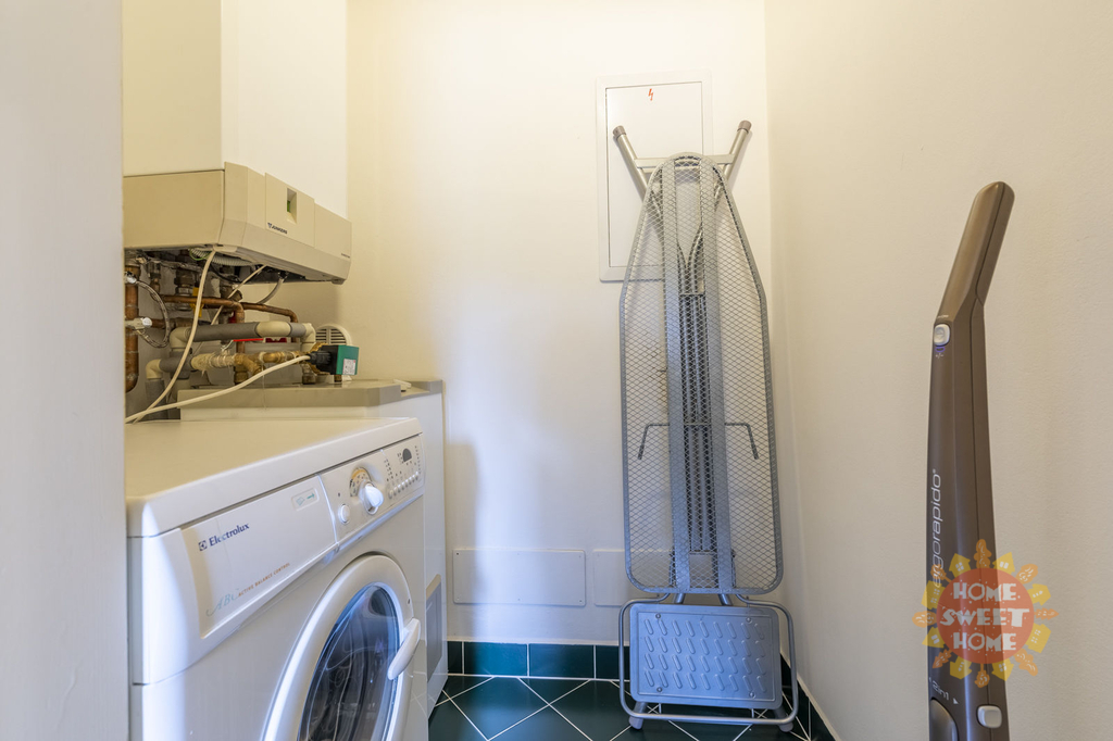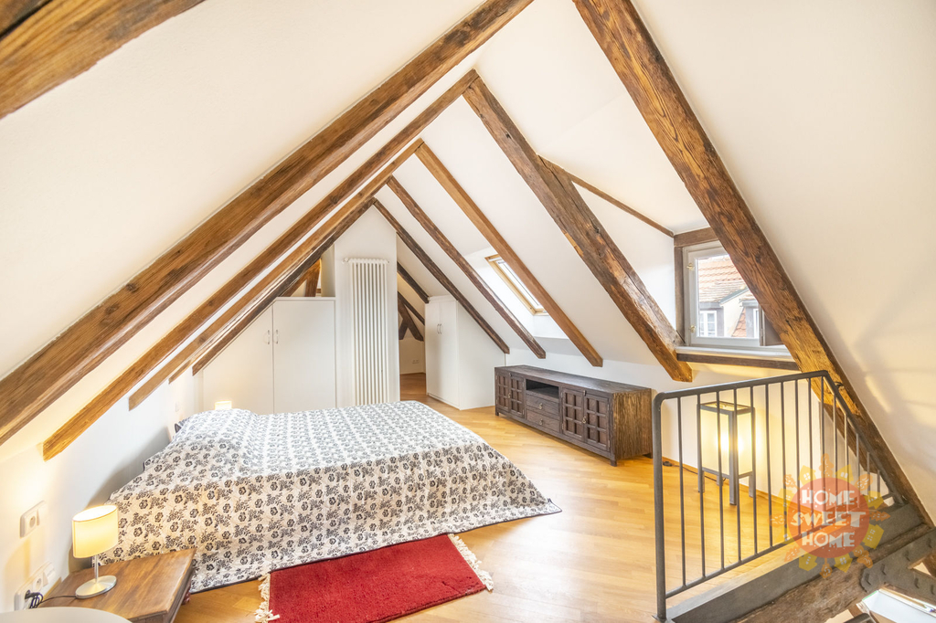 V prvním patře nalezneme dvě ložnice, koupelnu, útulný obývací pokoj s moderním kuchyňským koutem, kde je sporák se sklokeramickou deskou, trouba, lednice a myčka, ve druhém podlaží je open space prostor a koupelna. Na podlahách jsou parkety a dlažba.