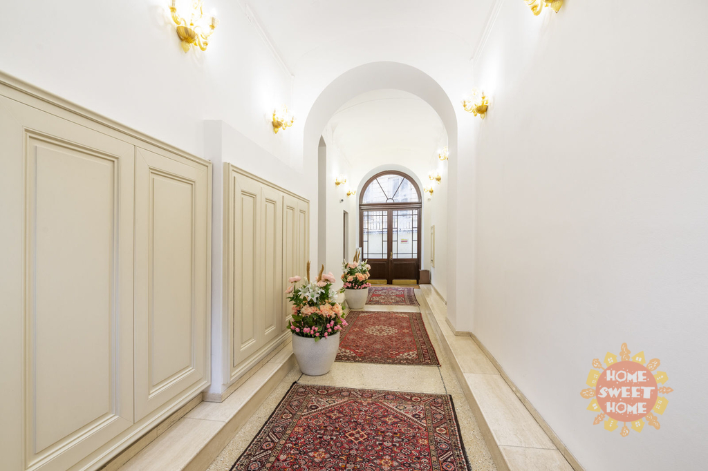 Apartmán se skládá z jídelny s kuchyňským koutem, obývacího pokoje, ložnice, koupelny a chodby a je zařízený vysoce kvalitním a stylovým italským nábytkem. V jídelně najdete plně vybavenou a na míru navrženou kuchyň, jídelní stůl se židlemi, vitrínu a velkou komodu, vše z masivního dřeva s lesklým povrchem. Obývací pokoj je také zařízený nábytkem z masivního dřeva a koženou pohovkou. Kromě manželské postele nabízí ložnice také dostatek úložného prostoru díky velké vestavěné skříni. V koupelně je vana a pračka. Všechny pokoje mají dřevěné parketové podlahy a koupelna je obložená dlažbou.