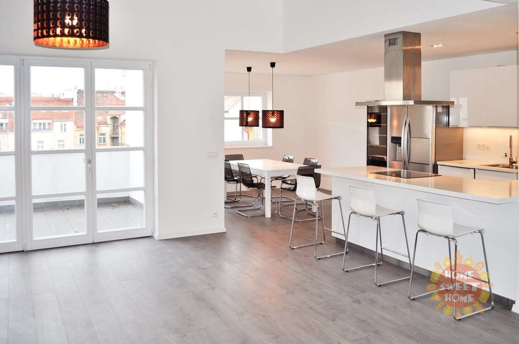 Dovolujeme si Vám nabídnout stylový nezařízený byt k pronájmu, dispozičně řešený jako 5kk o rozloze 218 m2 + terasa 8 m2. Byt prošel důkladnou kompletní rekonstrukcí s důrazem na zachování původních architektonických detailů.