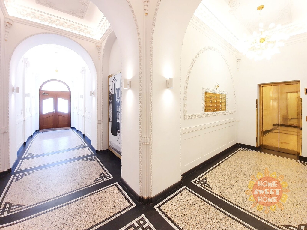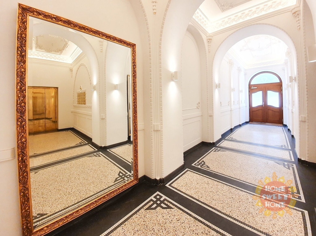 Jedinečný a velmi světlý byt se nachází v pátém patře zrenovovaného secesního domu s výtahem. Rezidenční dům se nachází v prestižní lokalitě Josefova a Starého Města - Dušní ulice v těsné blízkosti Pařížské ulice, jediná luxusní lokalita světového formátu v Praze - obchodní třída spojující nábřeží Vltavy a Staroměstské náměstí. Jako své sídlo ji volí obchody světoznámých jmen. Důležité adresy města Prahy dostupné během chvilky.