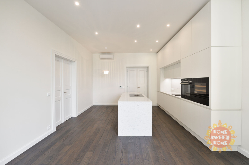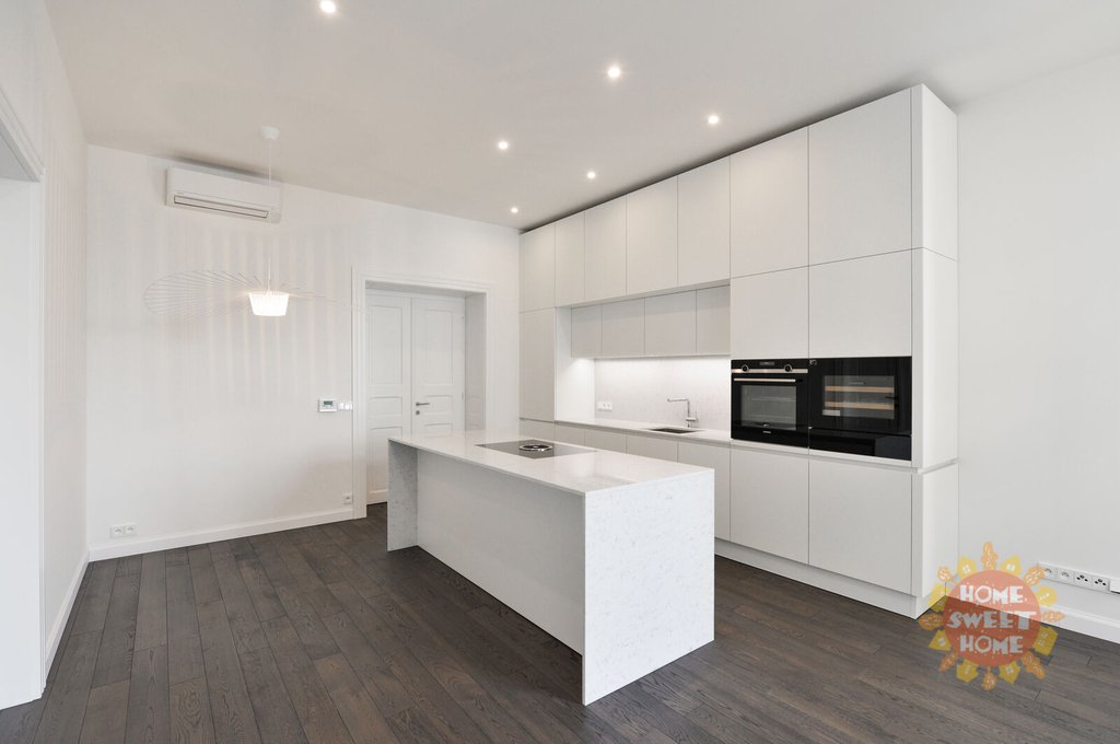 Nabízíme moderní zrekonstruovaný prostorný byt 4+kk (135m2 + 2m2 balkon) k pronájmu. Nadstandardní zařízený byt se nachází ve druhém nadzemním podlaží citlivě zrekonstruovaného secesního činžovního domu s výtahem v oblíbené lokalitě pražských Vinohrad, v ulici Laubova.