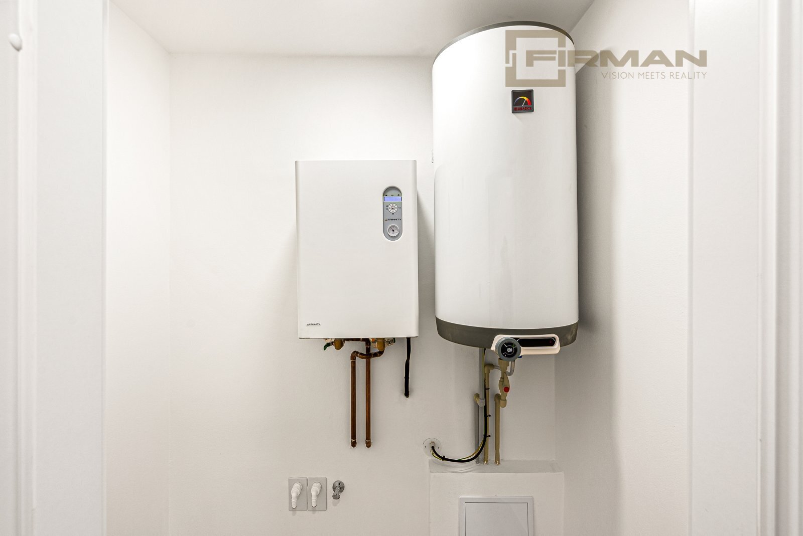 Vytápění je řešeno samostatně moderním elektrokotlem a ohřev vody bojlerem. Je zde možná instalace tepelného čerpadla a klimatizace.