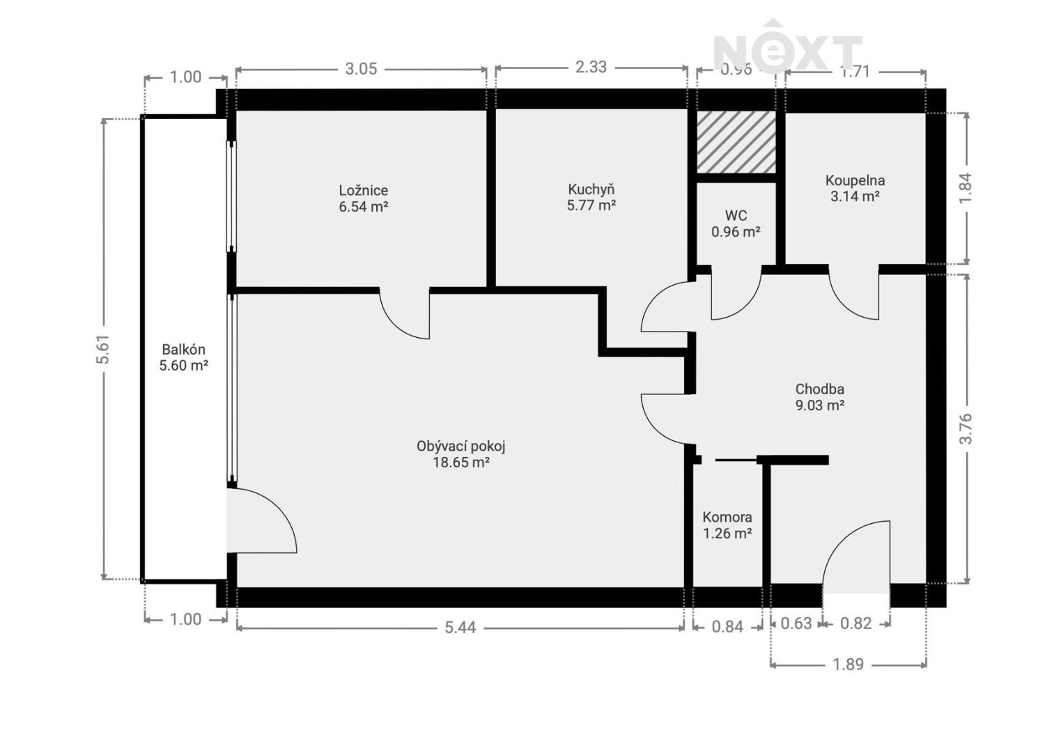 - Dispozice bytu: 2+1