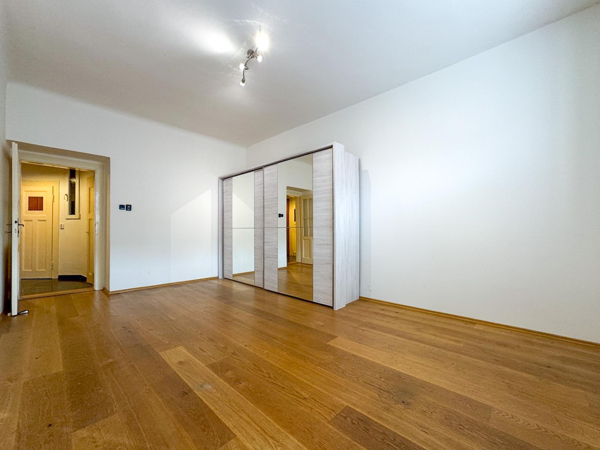 Byt se nachází v 3.NP činžovního domu v ulici U Průhonu, okna z obou místností má do klidné ulice a je v osobním vlastnicví. V posledních letech byl dlouhodobě pronajat, ale je skoro jako nový a čeká na své nové majitele. Dispozice je 2+kk s 48m2. Za vstupními dveřmi do bytu je chodba, odkud je vstup do všech místností bytu. Díky vysokým stropům je zde určitě dostatek místa na vybudování úložných prostor. V pokoji je již vybudovaný kuchyňský kout a na 18m2 zbývá dostatek místa pro posezení a vybavení obývacího pokoje. V ložnici s 20m2 je již vestavěná skříň a ostatní vybavení již záleží na Vás.