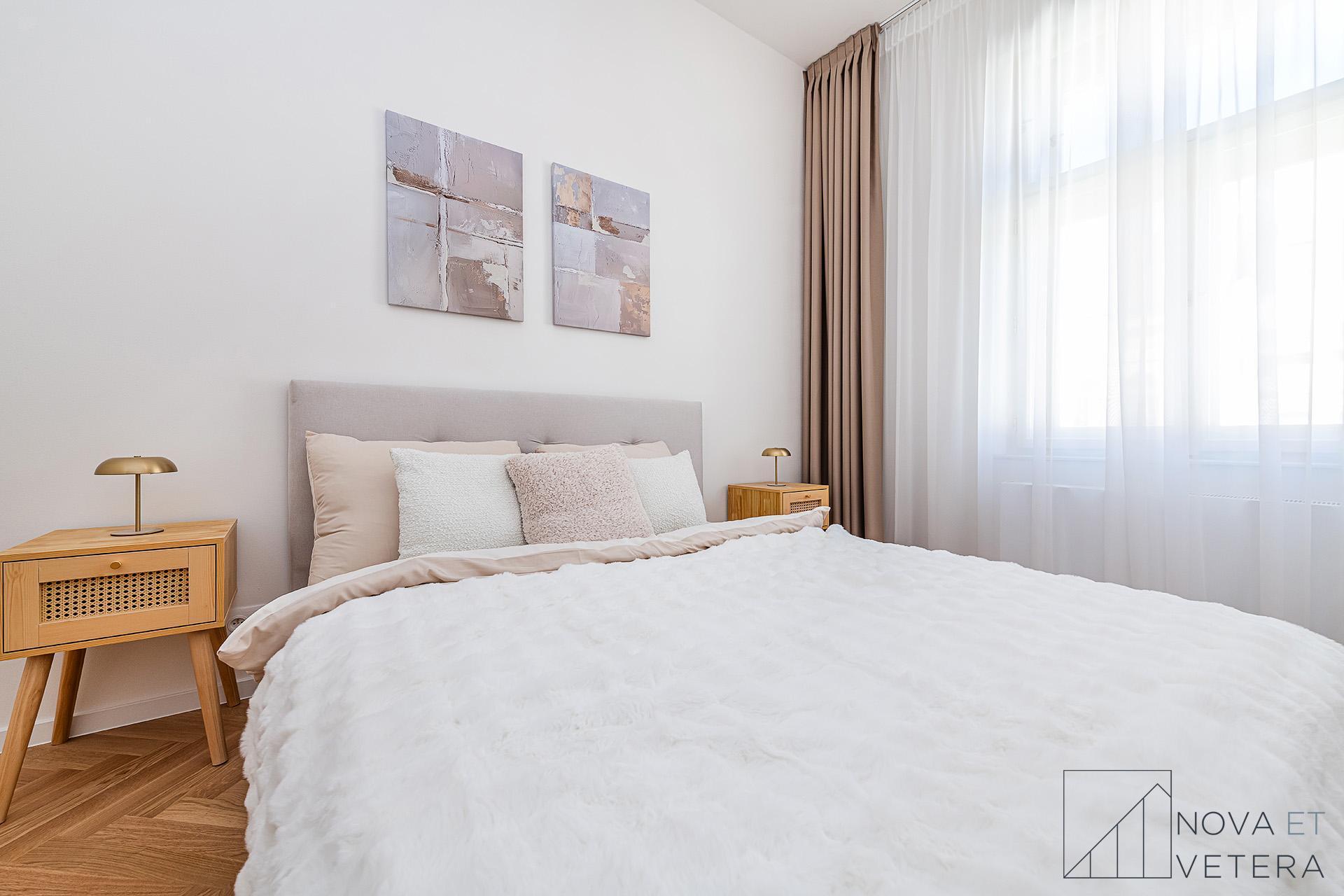 Vysoký standard kompletní rekonstrukce zahrnuje nové rozvody elektřiny, vody a odpadů. Dále rekonstrukce zahrnuje dřevěné parketové podlahy, kvalitní velkoformátové obklady a dlažbu od italského dodavatele MARAZZI. V koupelně a na toaletě naleznete sanitu značky GROHE. Moderní kuchyňská linka disponuje mimo jiné kvalitními spotřebiči značky BOSCH a zapuštěným granitovým dřezem.